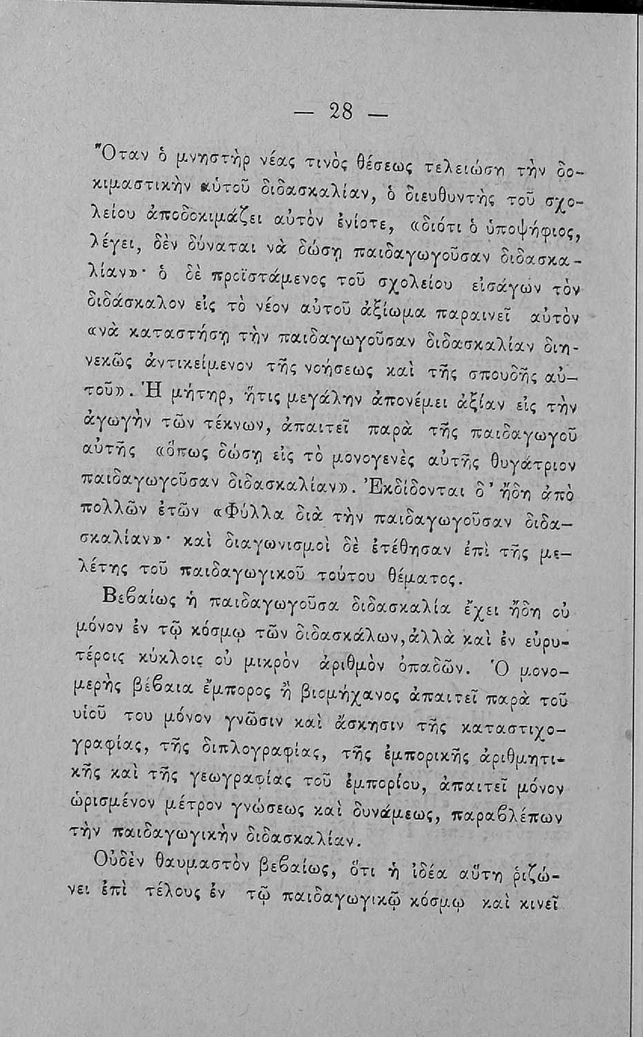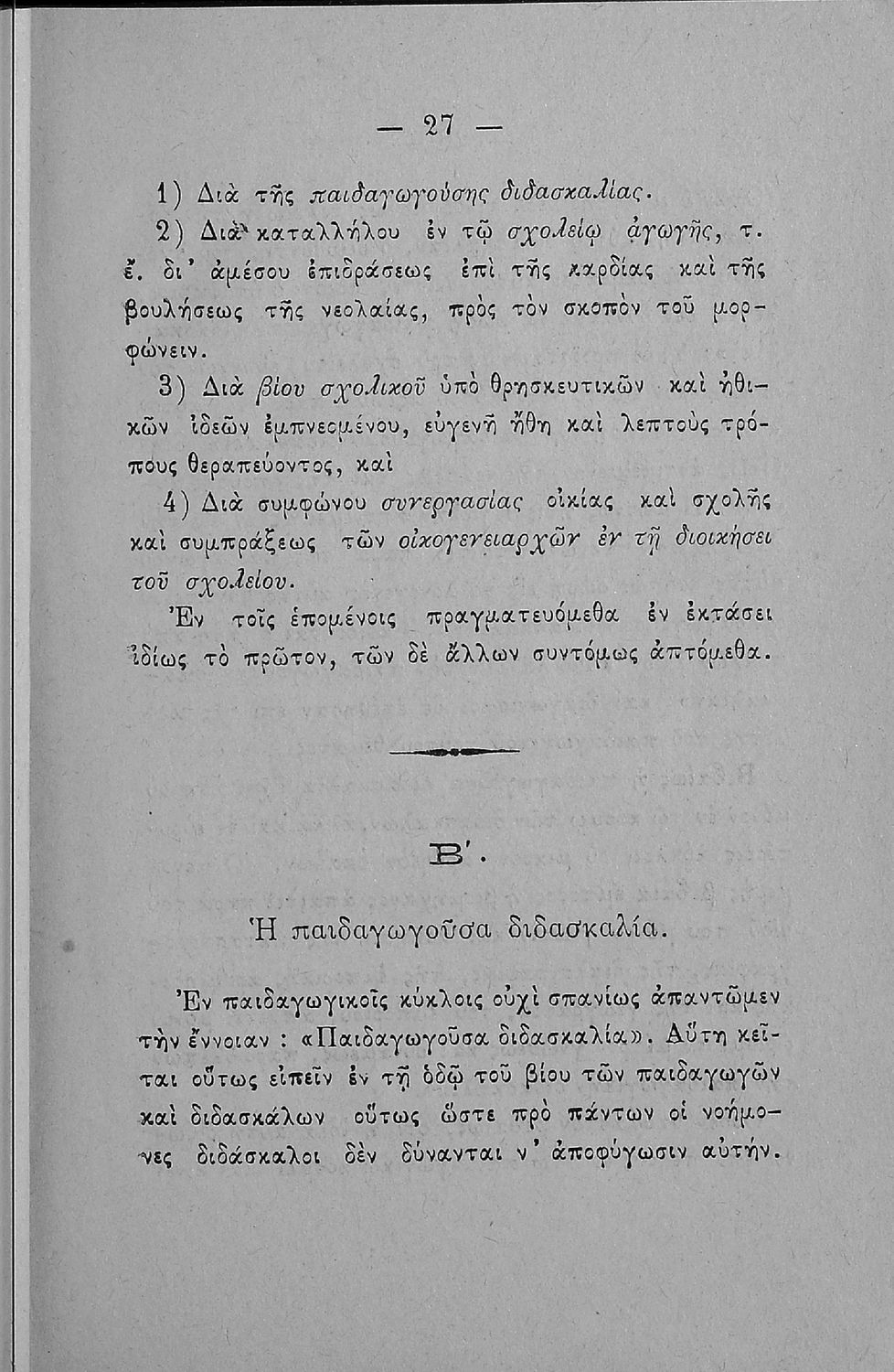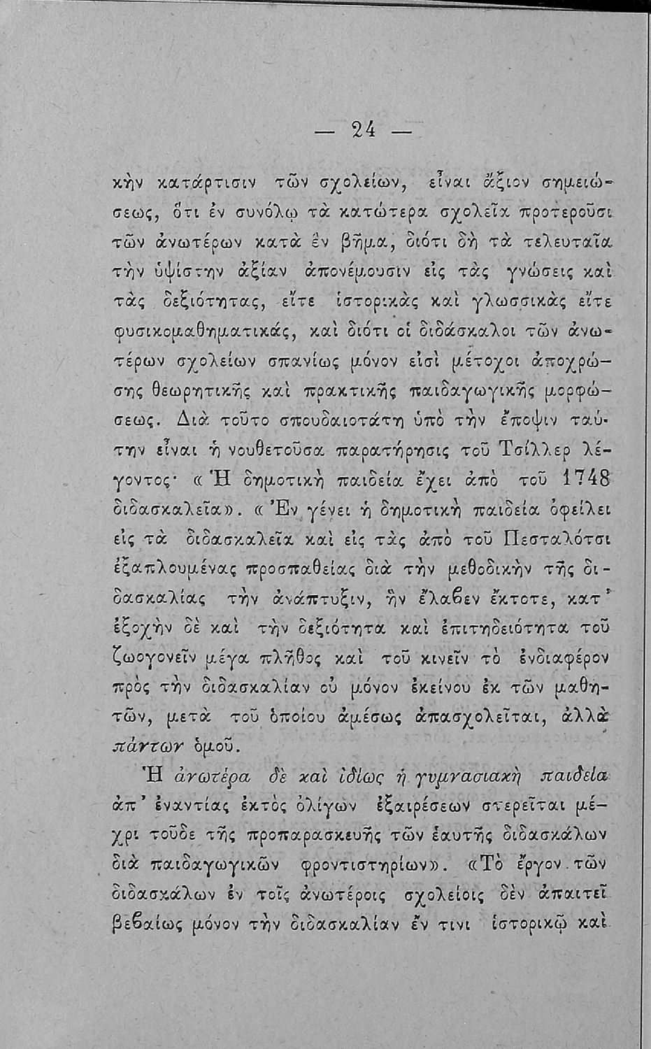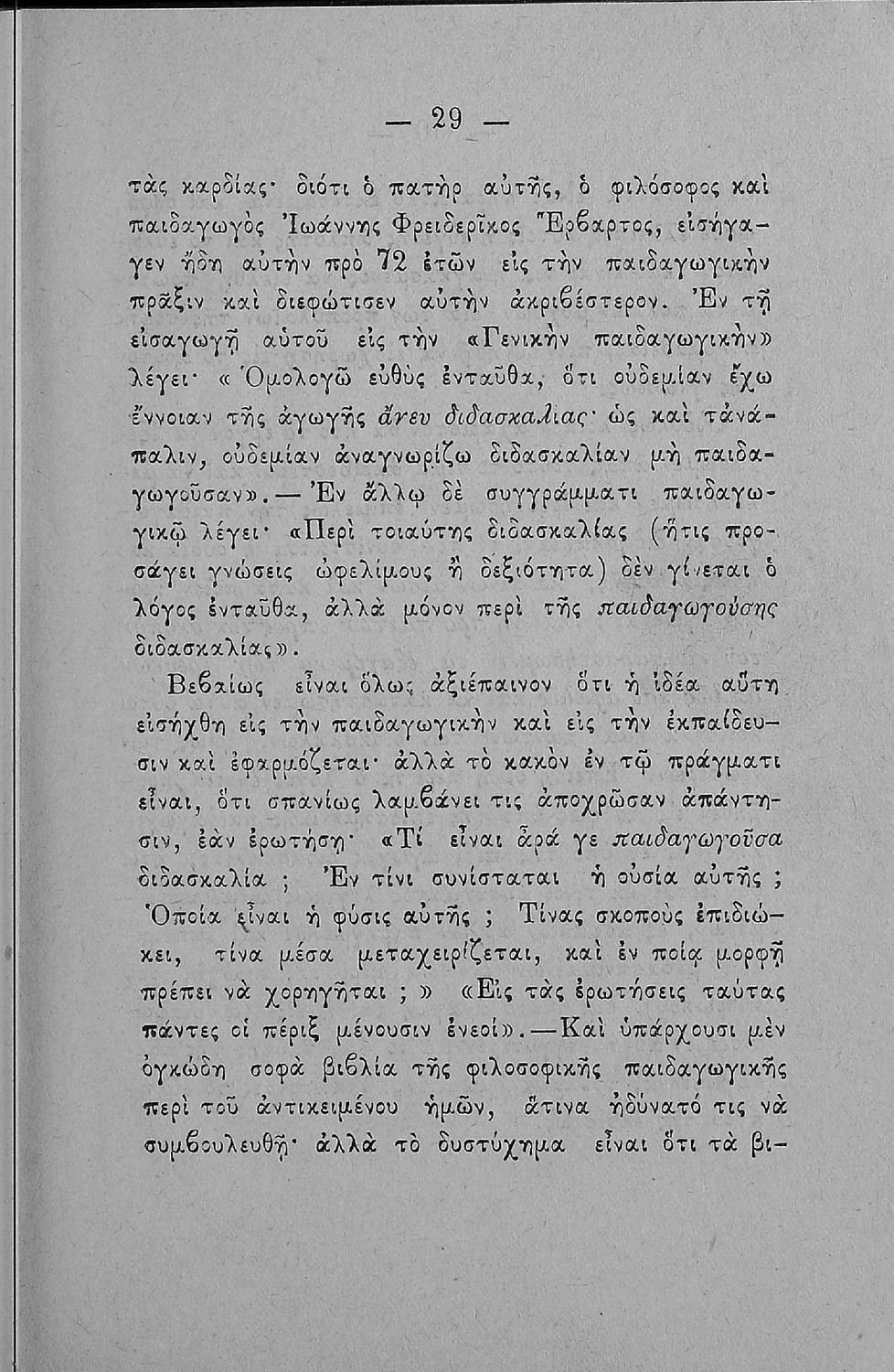 Παρουσίαση περιεχομένου: Παιδαγωγικό βοήθημα που αποσκοπεί να συμβάλει στην "ανοικοδόμηση του παιδαγωγικού σχολείου" και στη βάση του ότι "το σχολείον είναι εν πρώτοις παιδαγωγικόν καθίδρυμα και επομένως και διδακτικόν". Ο μεταφραστής ήταν καθηγητής στο Διδασκαλείο Αθηνών.