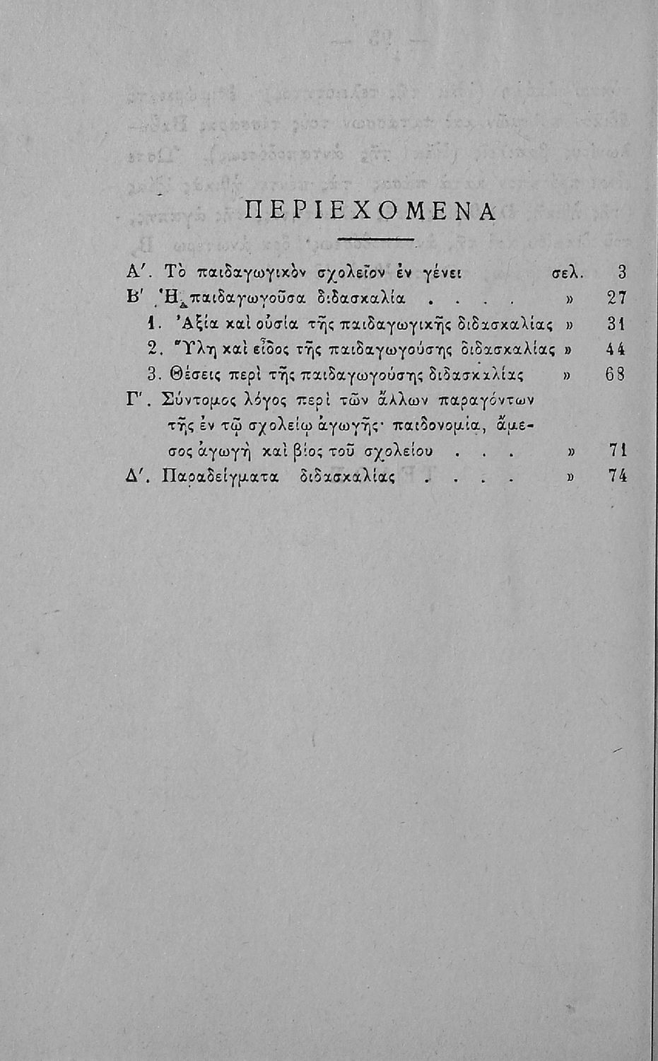 Παρουσίαση περιεχομένου: Παιδαγωγικό βοήθημα που αποσκοπεί να συμβάλει στην "ανοικοδόμηση του παιδαγωγικού σχολείου" και στη βάση του ότι "το σχολείον είναι εν πρώτοις παιδαγωγικόν καθίδρυμα και επομένως και διδακτικόν". Ο μεταφραστής ήταν καθηγητής στο Διδασκαλείο Αθηνών.