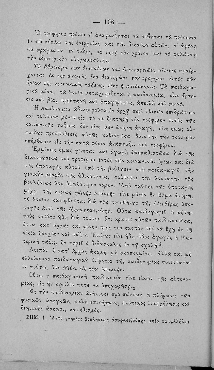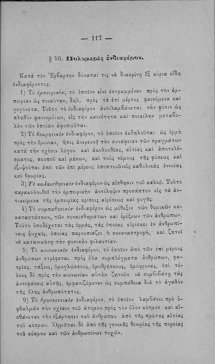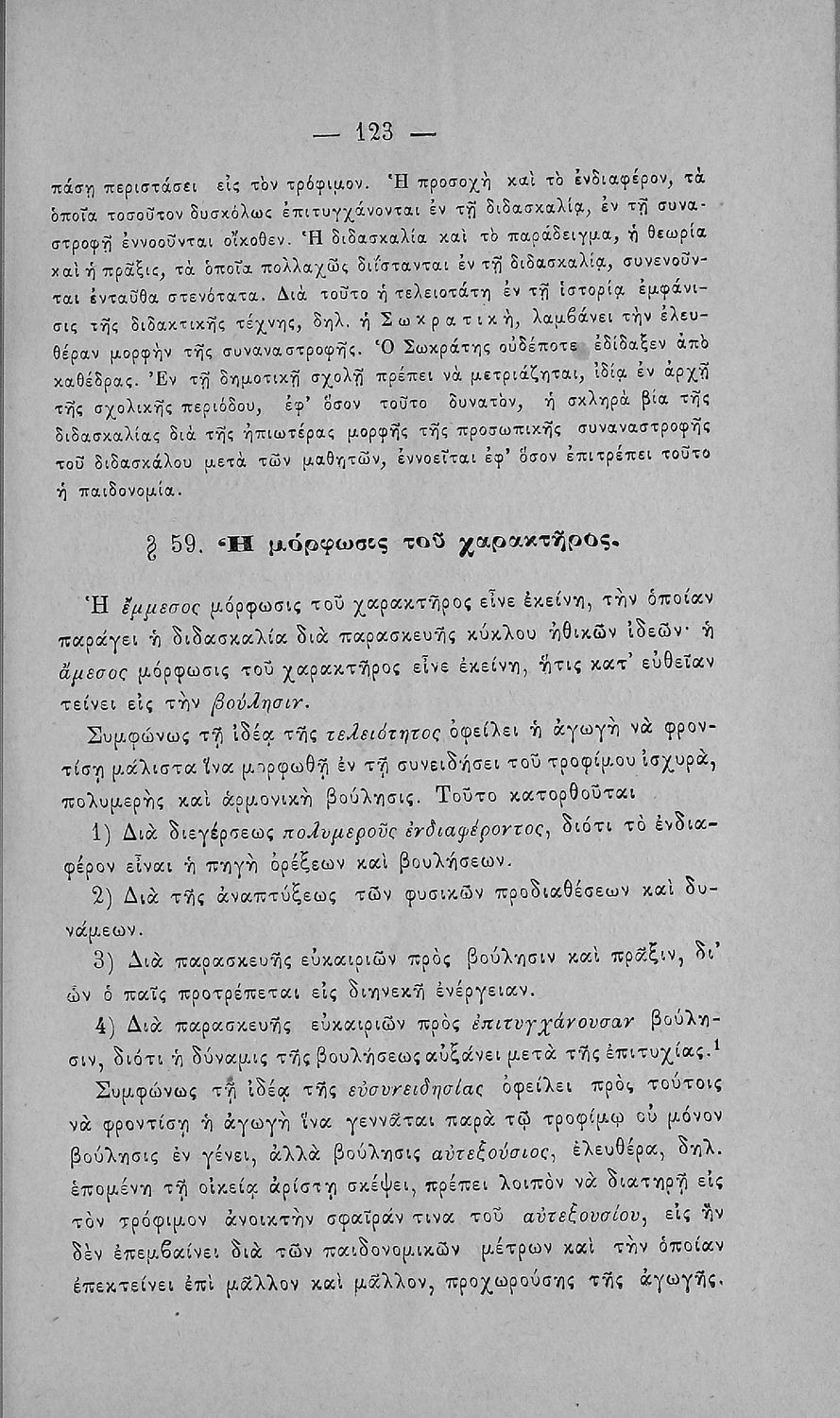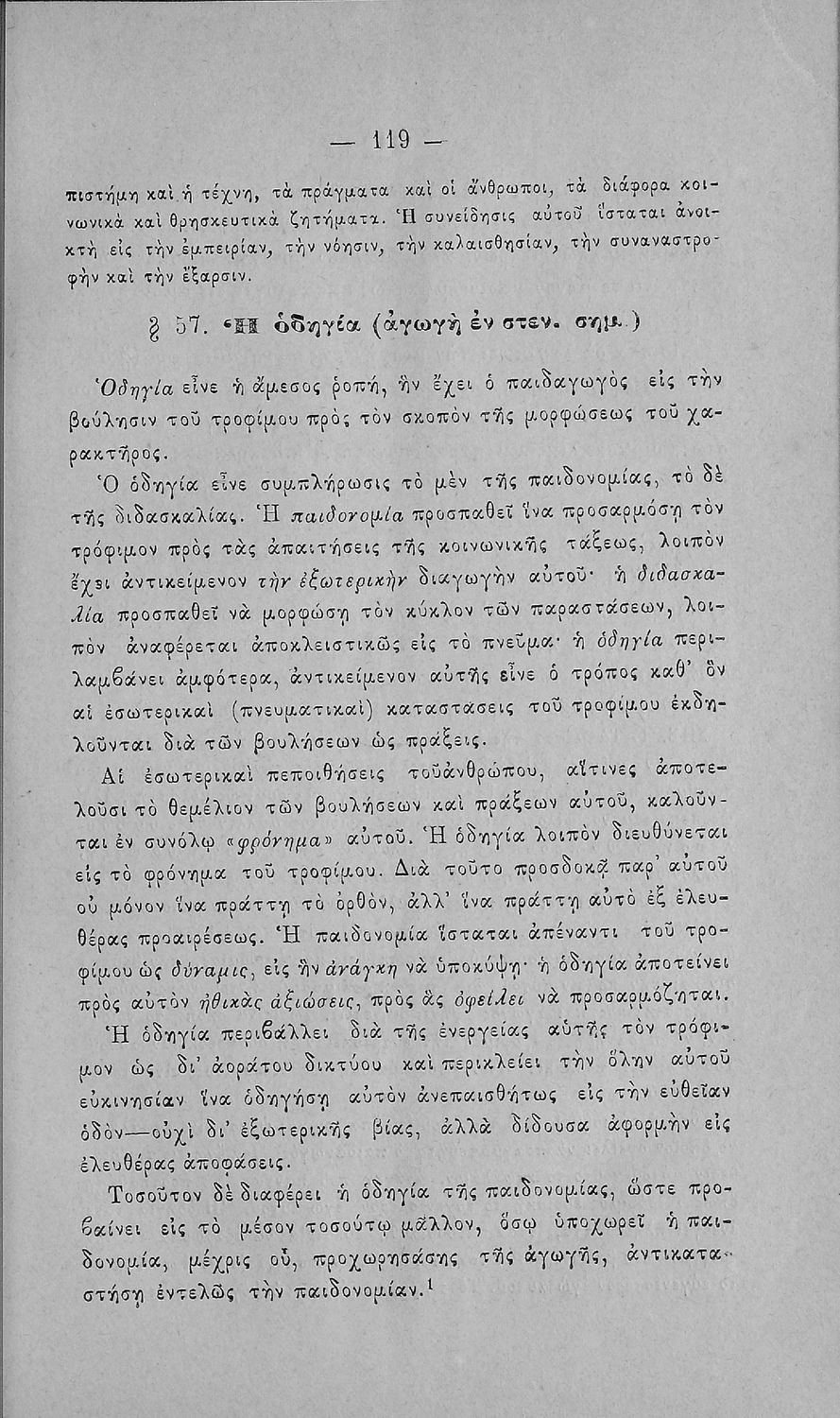 Παρουσίαση περιεχομένου: Σχολικό εγχειρίδιο που απευθύνεται στους μαθητές των Διδασκαλείων και του Πανεπιστημίου και αποσκοπεί να τους εξοικειώσει με ζητήματα παιδαγωγικής, διδακτικής, ψυχολογίας, λογικής και ηθικής. Το πρωτότυπο εγχειρίδιο είχε εγκριθεί από την αυστριακή κυβέρνηση και η μετάφρασή του έχει εγκριθεί από το Υπουργείο Εκκλησιαστικών και Δημόσιας Εκπαίδευσης. Ο μεταφραστής ήταν διευθυντής του Διδασκαλείου της Αθήνας και υφηγητής Φιλοσοφίας στο Πανεπιστήμιο Αθηνών.