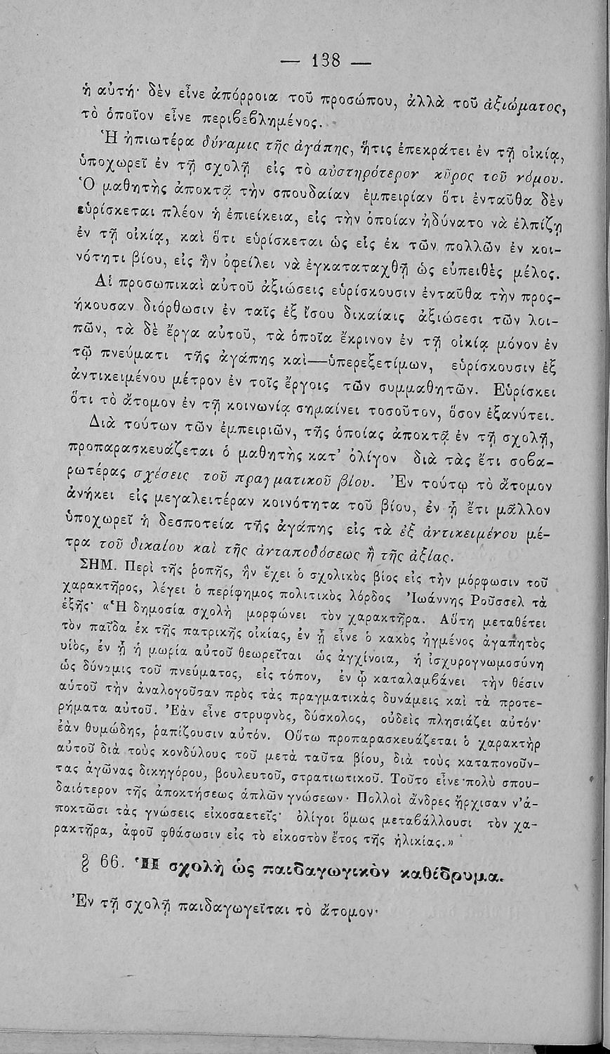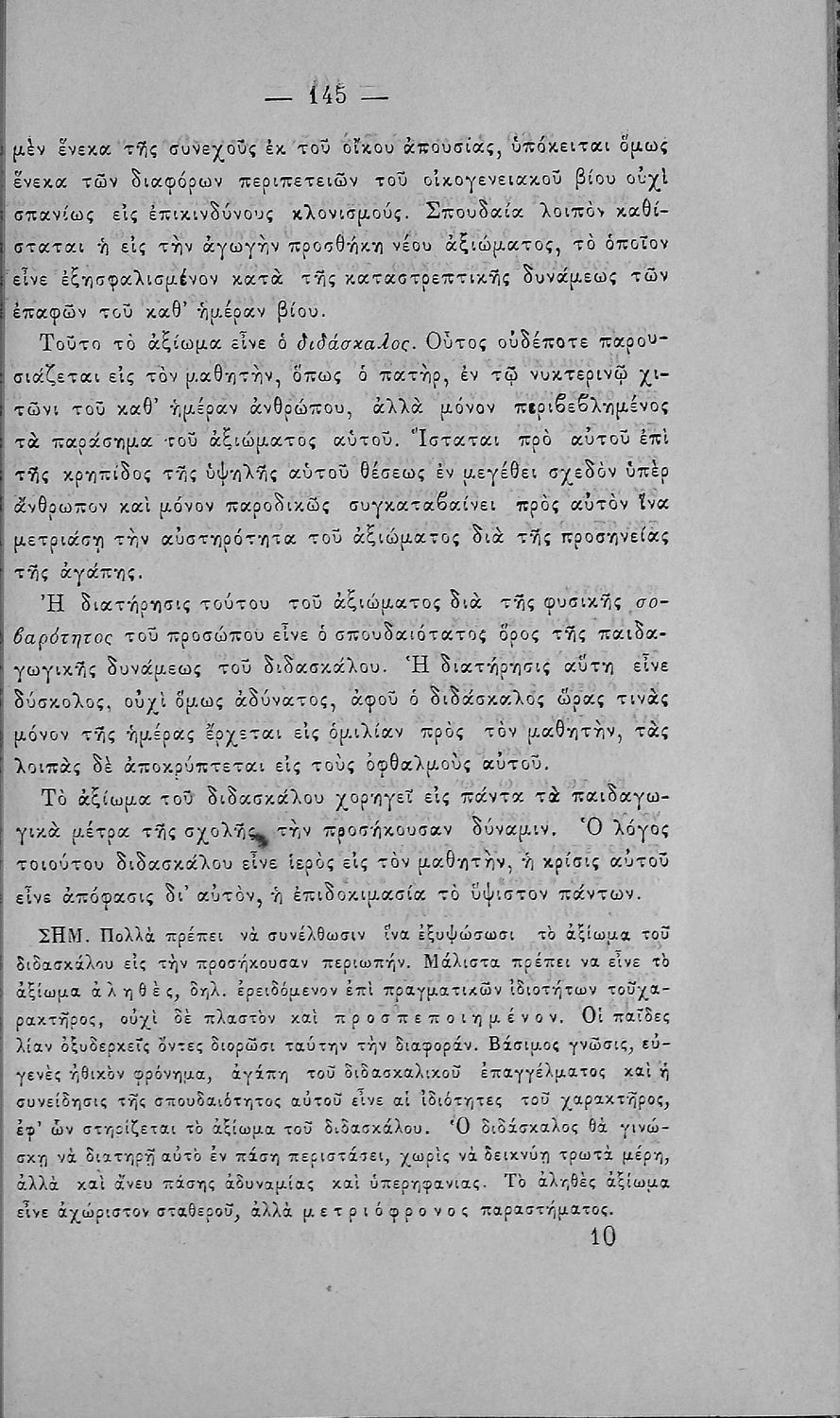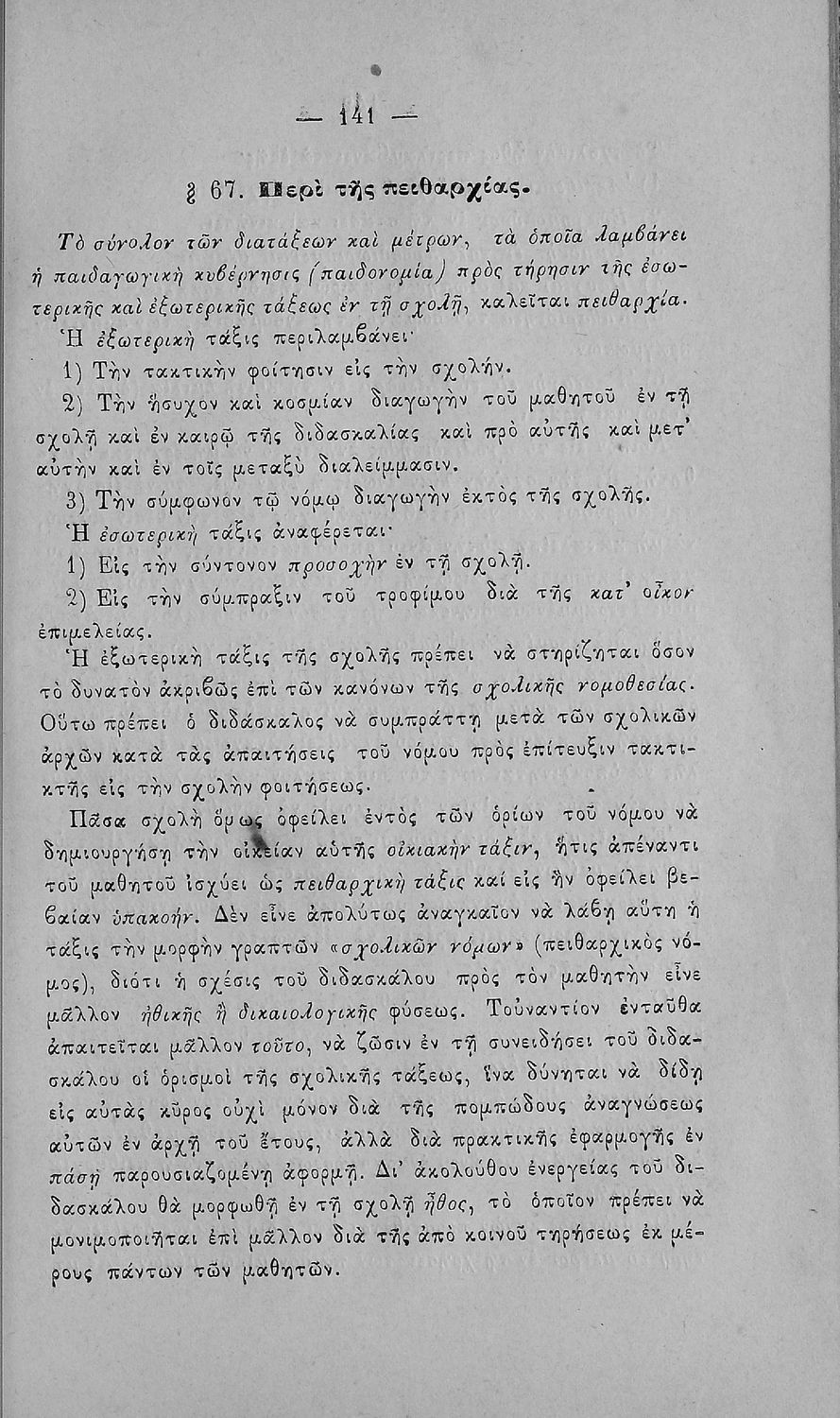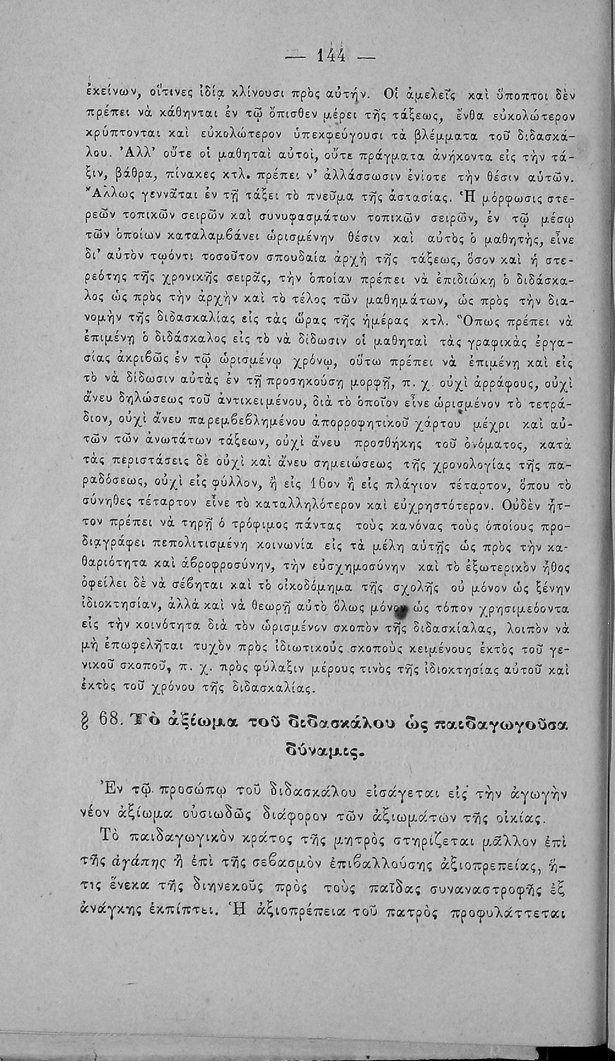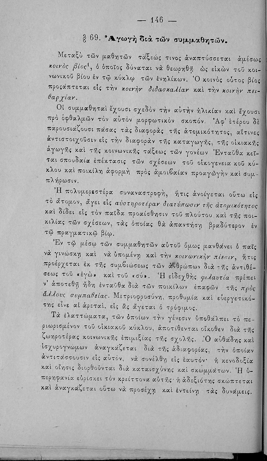 Σχολικό εγχειρίδιο που απευθύνεται στους μαθητές των Διδασκαλείων και του Πανεπιστημίου και αποσκοπεί να τους εξοικειώσει με ζητήματα παιδαγωγικής, διδακτικής, ψυχολογίας, λογικής και ηθικής. Το πρωτότυπο εγχειρίδιο είχε εγκριθεί από την αυστριακή κυβέρνηση και η μετάφρασή του έχει εγκριθεί από το Υπουργείο Εκκλησιαστικών και Δημόσιας Εκπαίδευσης. Ο μεταφραστής ήταν διευθυντής του Διδασκαλείου της Αθήνας και υφηγητής Φιλοσοφίας στο Πανεπιστήμιο Αθηνών.