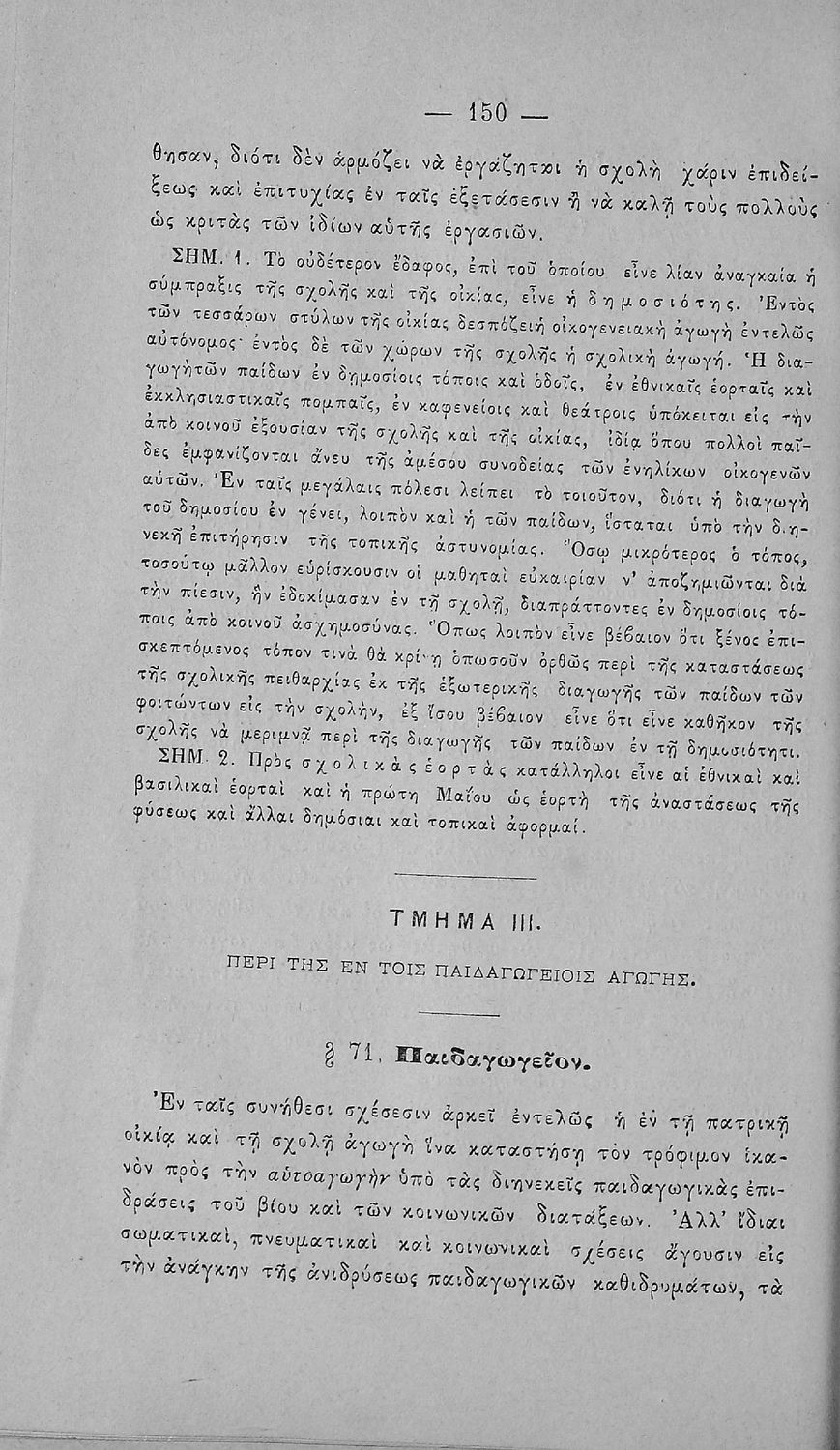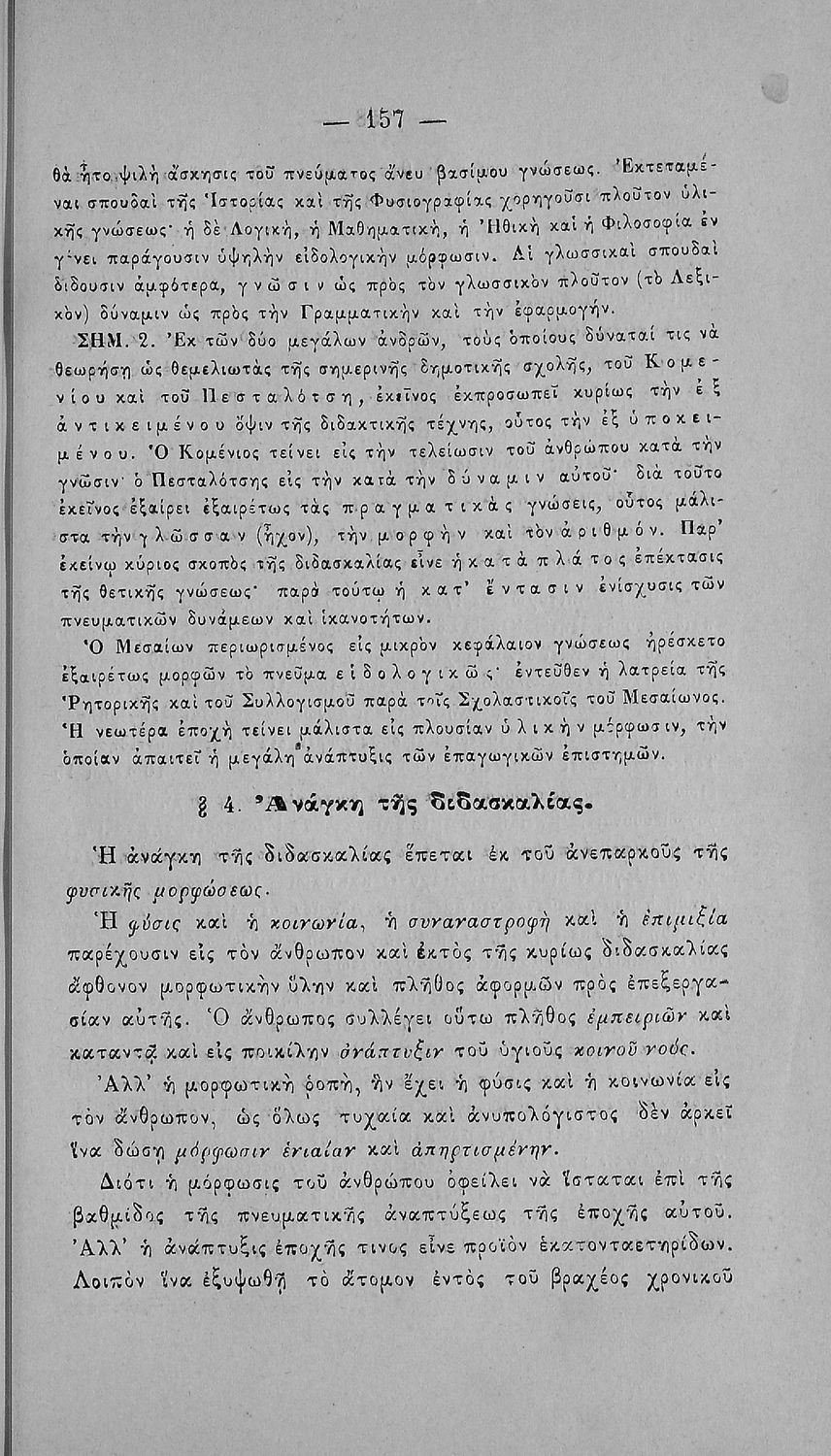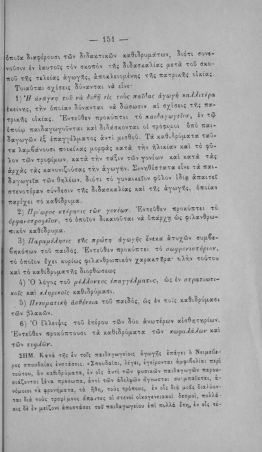 Βαθμίδα εκπαίδευσης: Δευτεροβάθμια Τάξη: Διδασκαλείο Γλώσσα: Καθαρεύουσα Παρουσίαση περιεχομένου: Σχολικό εγχειρίδιο που απευθύνεται στους μαθητές των Διδασκαλείων και του Πανεπιστημίου και αποσκοπεί να τους εξοικειώσει με ζητήματα παιδαγωγικής, διδακτικής, ψυχολογίας, λογικής και ηθικής. Το πρωτότυπο εγχειρίδιο είχε εγκριθεί από την αυστριακή κυβέρνηση και η μετάφρασή του έχει εγκριθεί από το Υπουργείο Εκκλησιαστικών και Δημόσιας Εκπαίδευσης. Ο μεταφραστής ήταν διευθυντής του Διδασκαλείου της Αθήνας και υφηγητής Φιλοσοφίας στο Πανεπιστήμιο Αθηνών. |