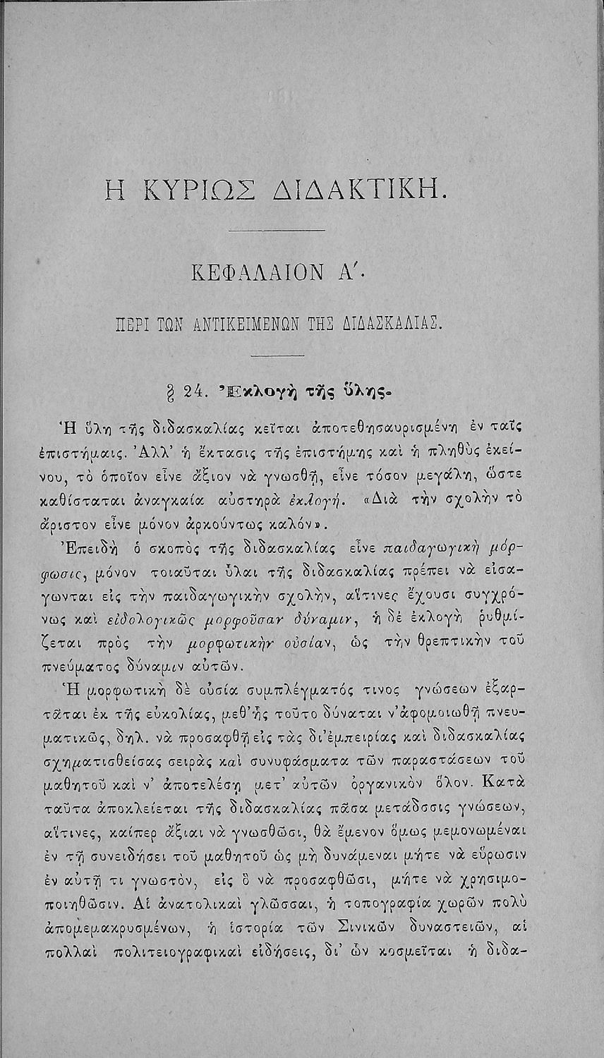 Παρουσίαση περιεχομένου: Σχολικό εγχειρίδιο που απευθύνεται στους μαθητές των Διδασκαλείων και του Πανεπιστημίου και αποσκοπεί να τους εξοικειώσει με ζητήματα παιδαγωγικής, διδακτικής, ψυχολογίας, λογικής και ηθικής. Το πρωτότυπο εγχειρίδιο είχε εγκριθεί από την αυστριακή κυβέρνηση και η μετάφρασή του έχει εγκριθεί από το Υπουργείο Εκκλησιαστικών και Δημόσιας Εκπαίδευσης. Ο μεταφραστής ήταν διευθυντής του Διδασκαλείου της Αθήνας και υφηγητής Φιλοσοφίας στο Πανεπιστήμιο Αθηνών.