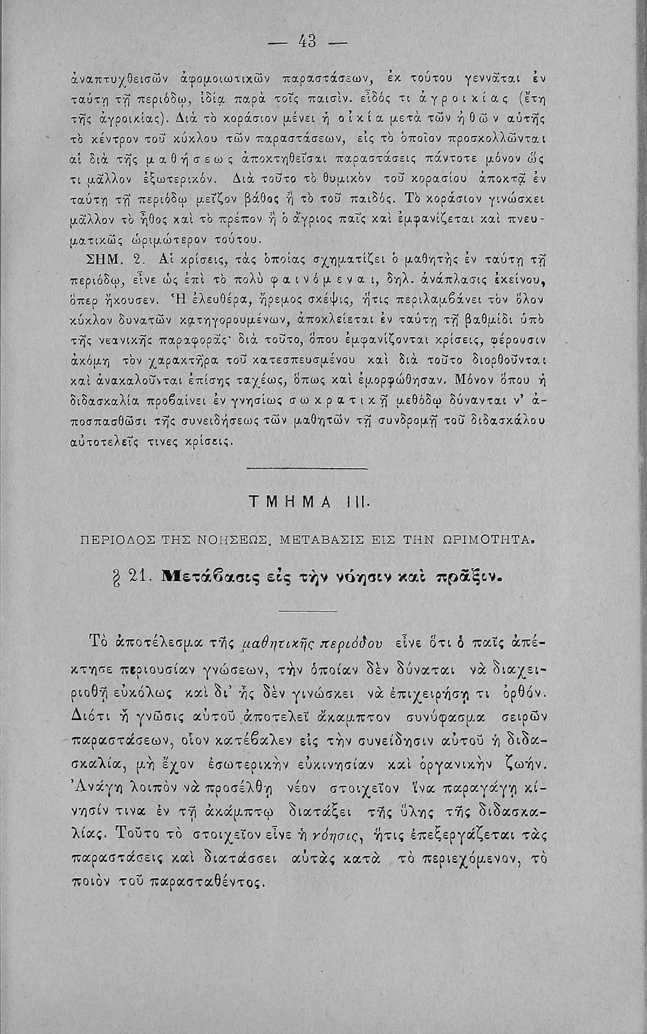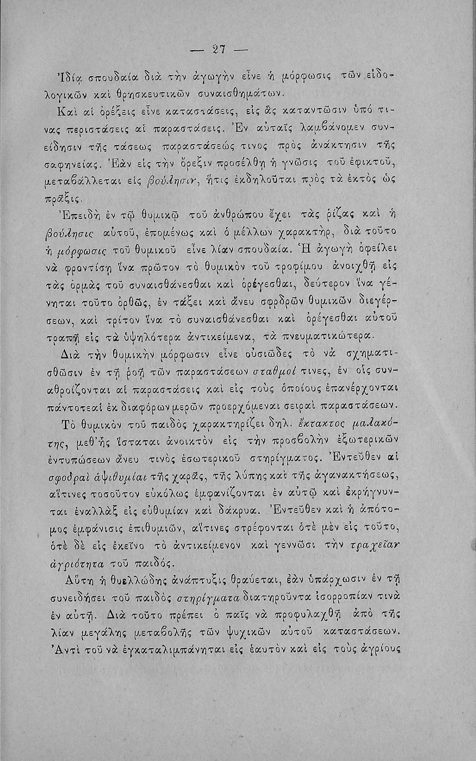 Παρουσίαση περιεχομένου: Σχολικό εγχειρίδιο που απευθύνεται στους μαθητές των Διδασκαλείων και του Πανεπιστημίου και αποσκοπεί να τους εξοικειώσει με ζητήματα παιδαγωγικής, διδακτικής, ψυχολογίας, λογικής και ηθικής. Το πρωτότυπο εγχειρίδιο είχε εγκριθεί από την αυστριακή κυβέρνηση και η μετάφρασή του έχει εγκριθεί από το Υπουργείο Εκκλησιαστικών και Δημόσιας Εκπαίδευσης. Ο μεταφραστής ήταν διευθυντής του Διδασκαλείου της Αθήνας και υφηγητής Φιλοσοφίας στο Πανεπιστήμιο Αθηνών.