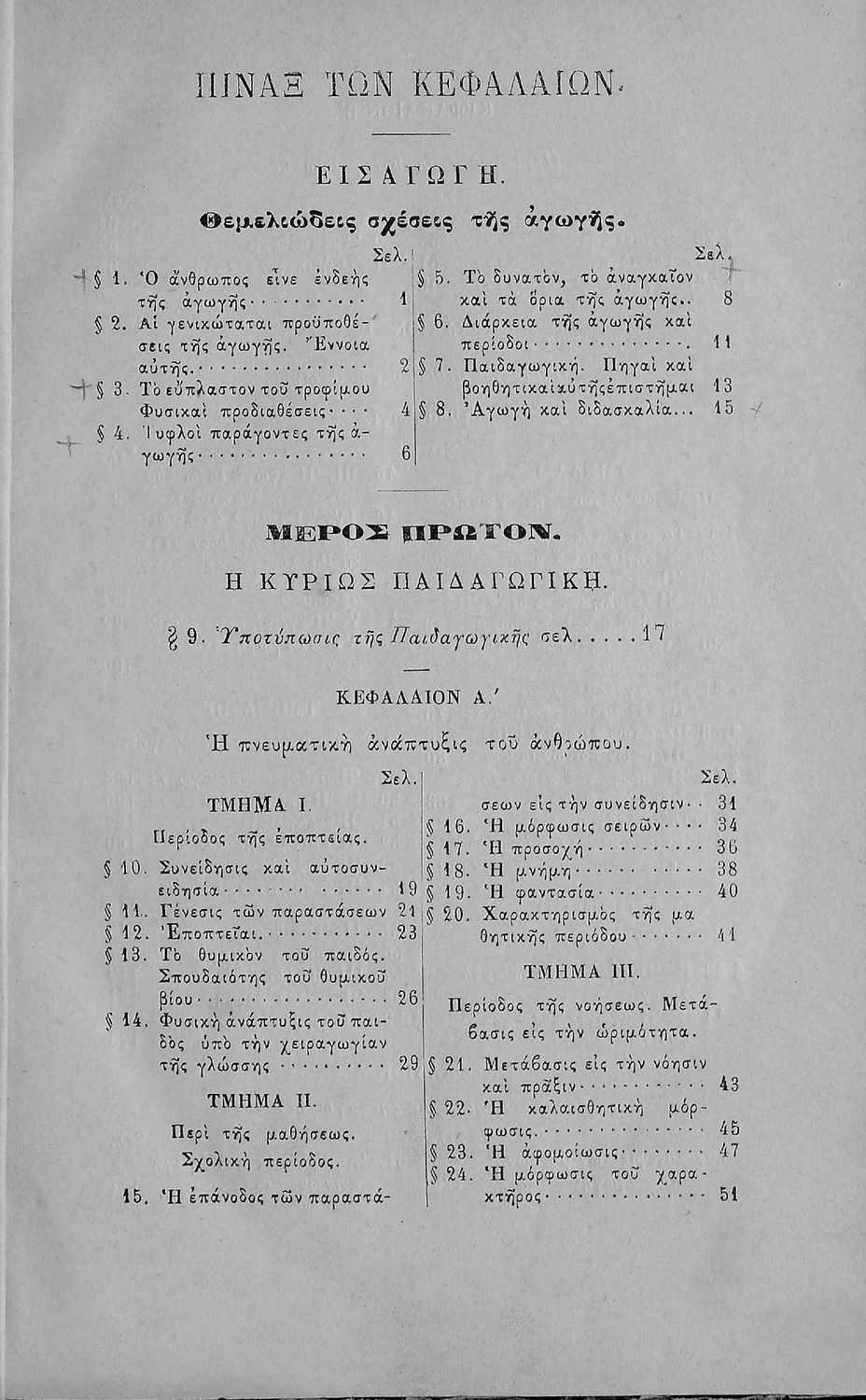 Σχολικό εγχειρίδιο που απευθύνεται στους μαθητές των Διδασκαλείων και του Πανεπιστημίου και αποσκοπεί να τους εξοικειώσει με ζητήματα παιδαγωγικής, διδακτικής, ψυχολογίας, λογικής και ηθικής. Το πρωτότυπο εγχειρίδιο είχε εγκριθεί από την αυστριακή κυβέρνηση και η μετάφρασή του έχει εγκριθεί από το Υπουργείο Εκκλησιαστικών και Δημόσιας Εκπαίδευσης. Ο μεταφραστής ήταν διευθυντής του Διδασκαλείου της Αθήνας και υφηγητής Φιλοσοφίας στο Πανεπιστήμιο Αθηνών.