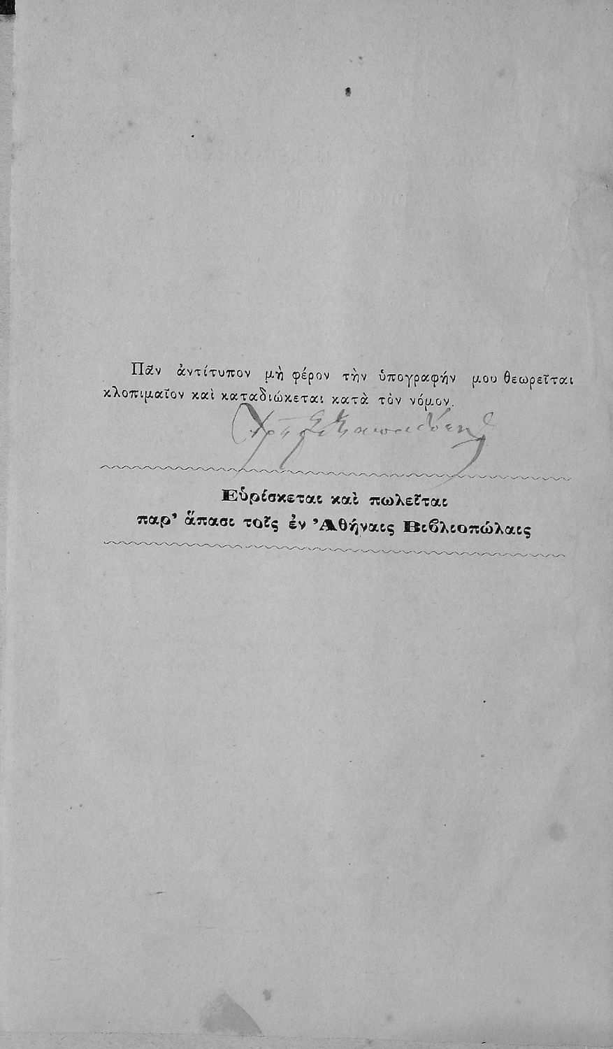 Εκδότης: Σπυρίδων Κουσουλίνος Έτος έκδοσης: 1892 Τόπος έκδοσης: Αθήνα Έκδοση: 2η |