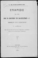 Εκδότης: Εκκλησιαστικός Κήρυξ Έτος έκδοσης: 1920 Τόπος έκδοσης: Αθήνα |