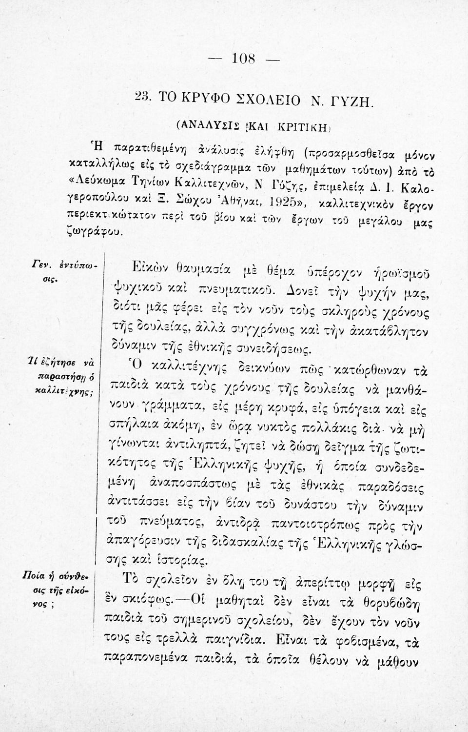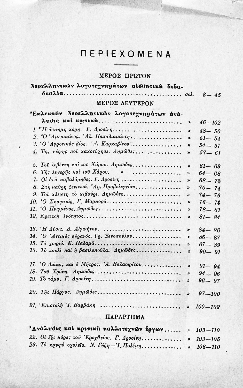 Παιδαγωγικό βοήθημα Νέων Ελληνικών. Περιλαμβάνει την αισθητική διδασκαλία των νεοελληνικών λογοτεχνημάτων για τα σχολεία της Μέσης Εκπαίδευσης.