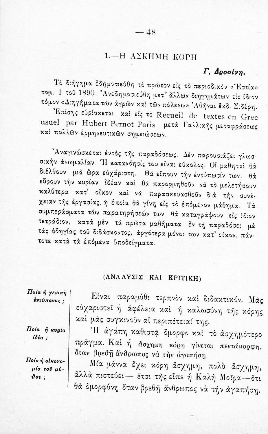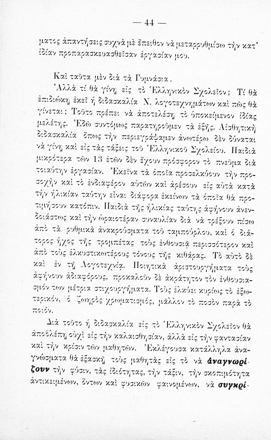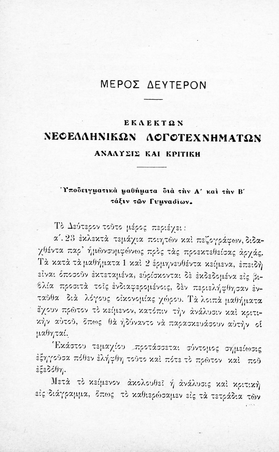 Παιδαγωγικό βοήθημα Νέων Ελληνικών. Περιλαμβάνει την αισθητική διδασκαλία των νεοελληνικών λογοτεχνημάτων για τα σχολεία της Μέσης Εκπαίδευσης.