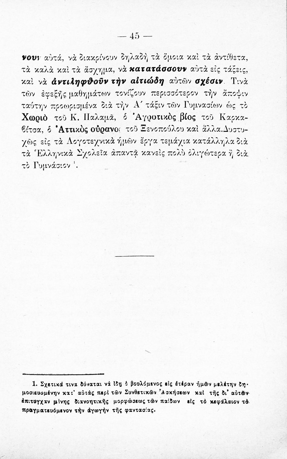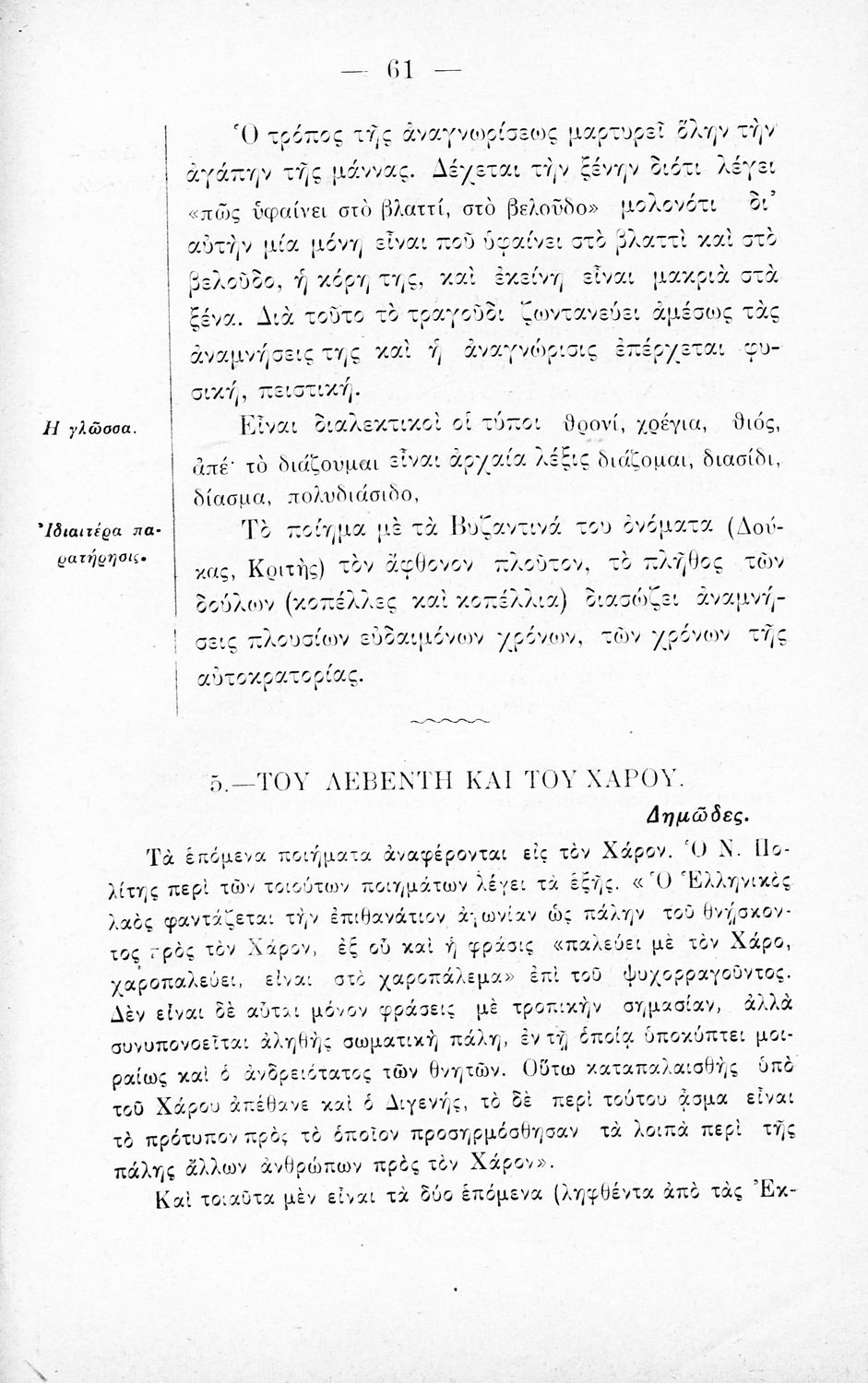 Γλώσσα: Καθαρεύουσα / Δημοτική