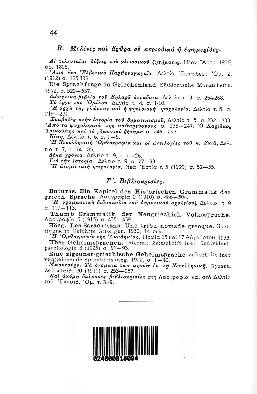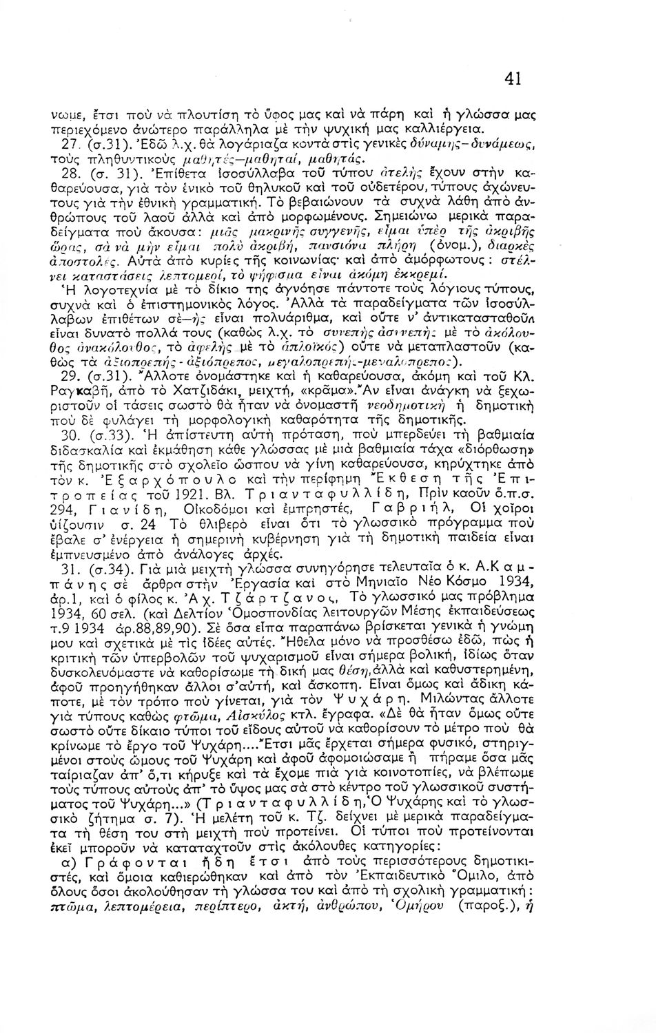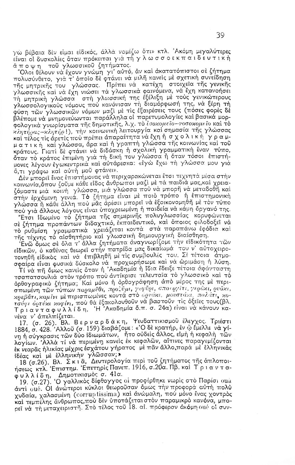 Έκδοση της ομιλίας του Μ. Τριανταφυλλίδη στη Νομική Σχολή Αθηνών στις 27 Μαρτίου 1934 με κάποιες συμπληρώσεις. Αναφέρεται στο γλωσσικό ζήτημα.