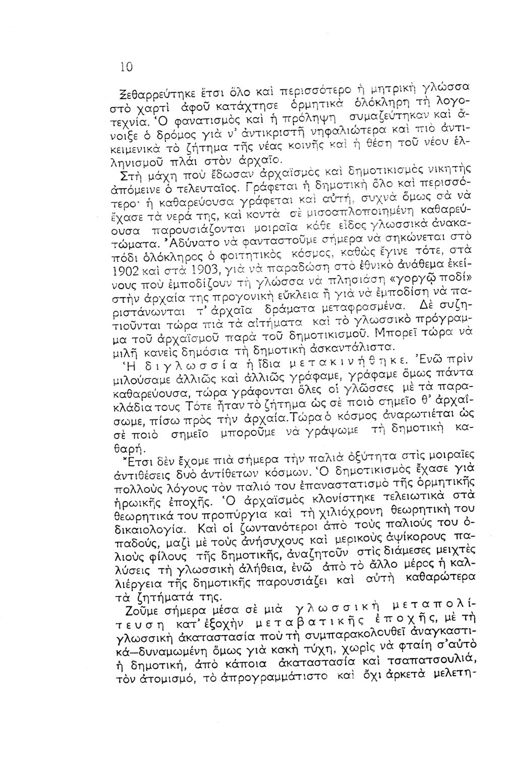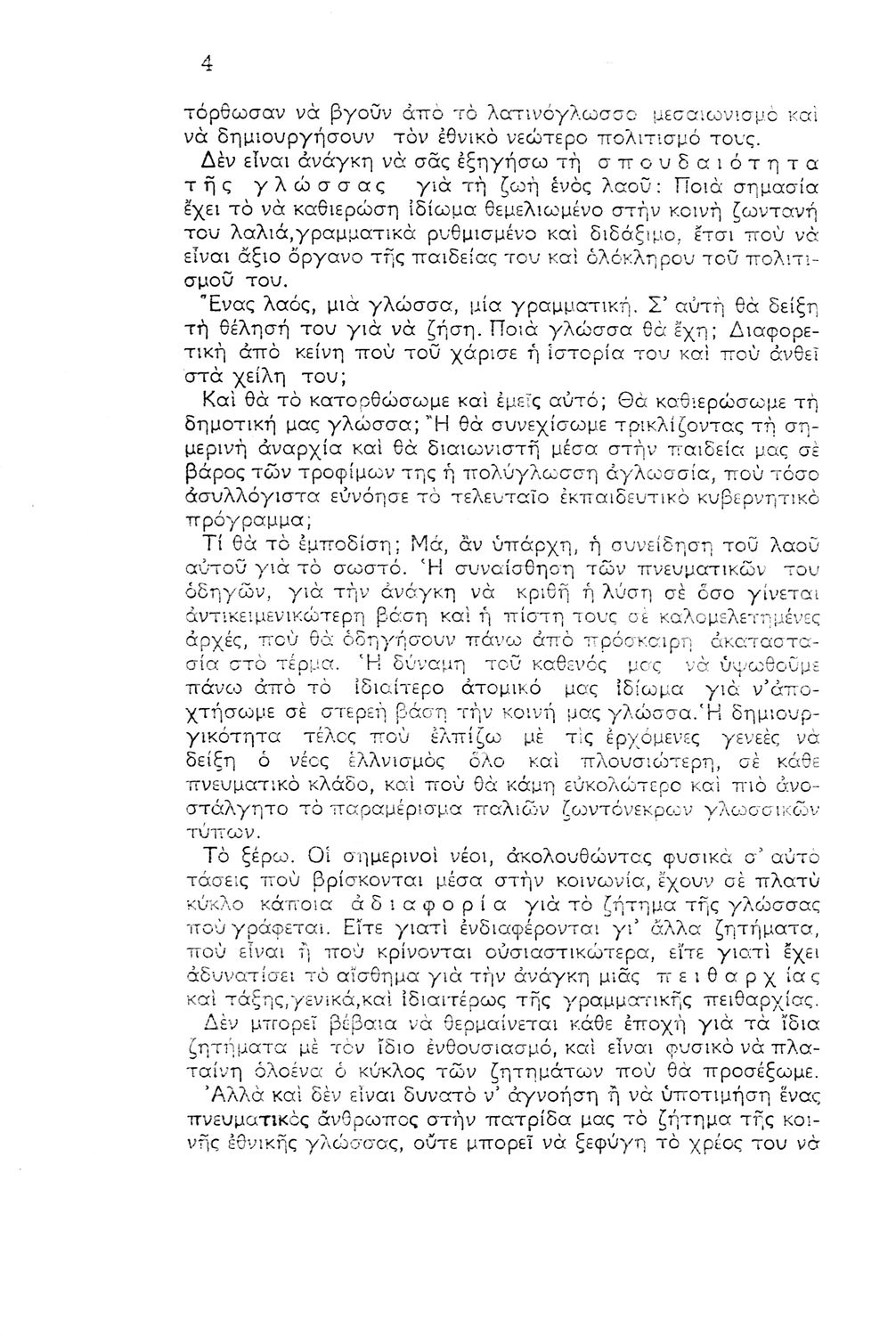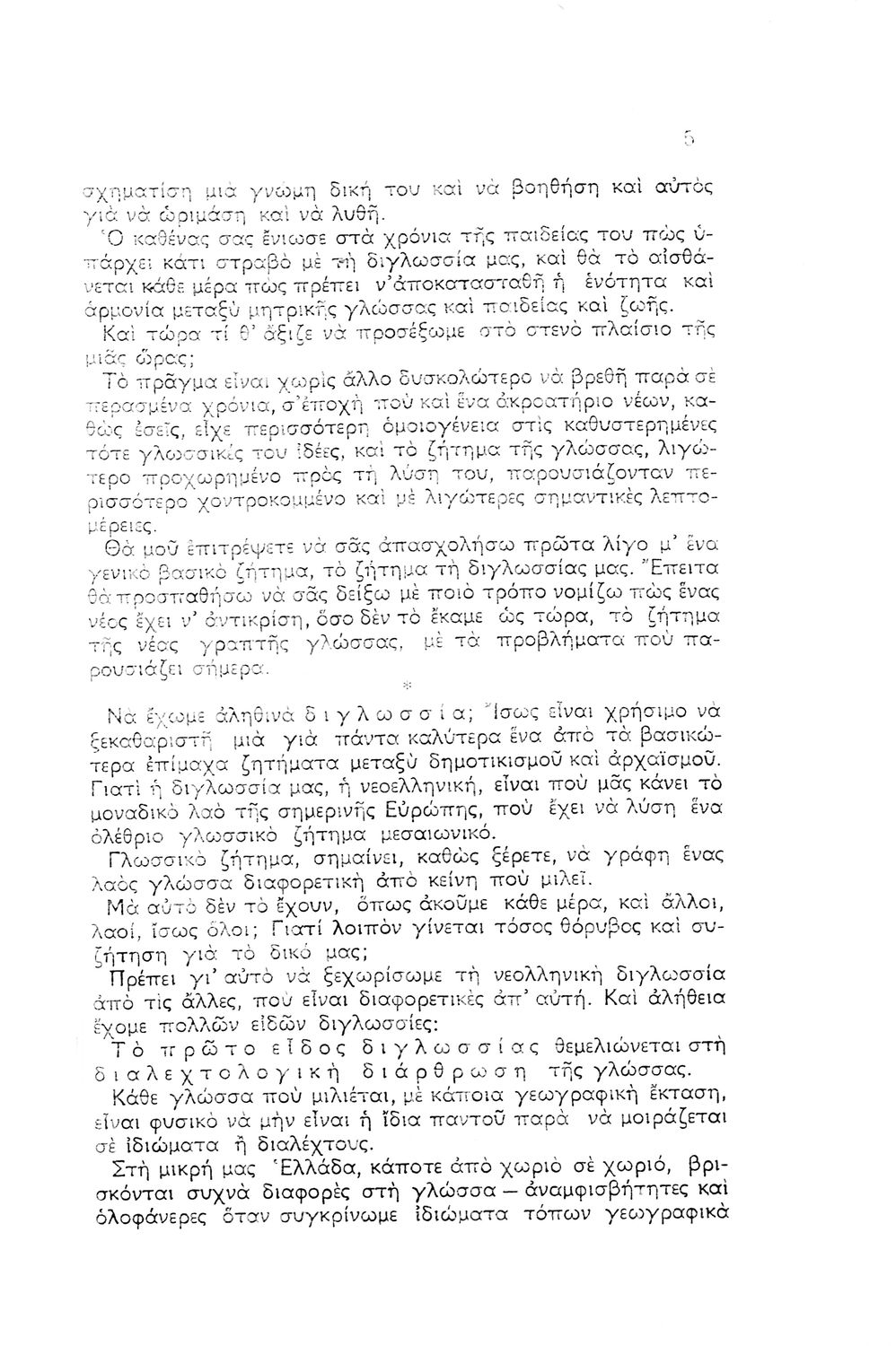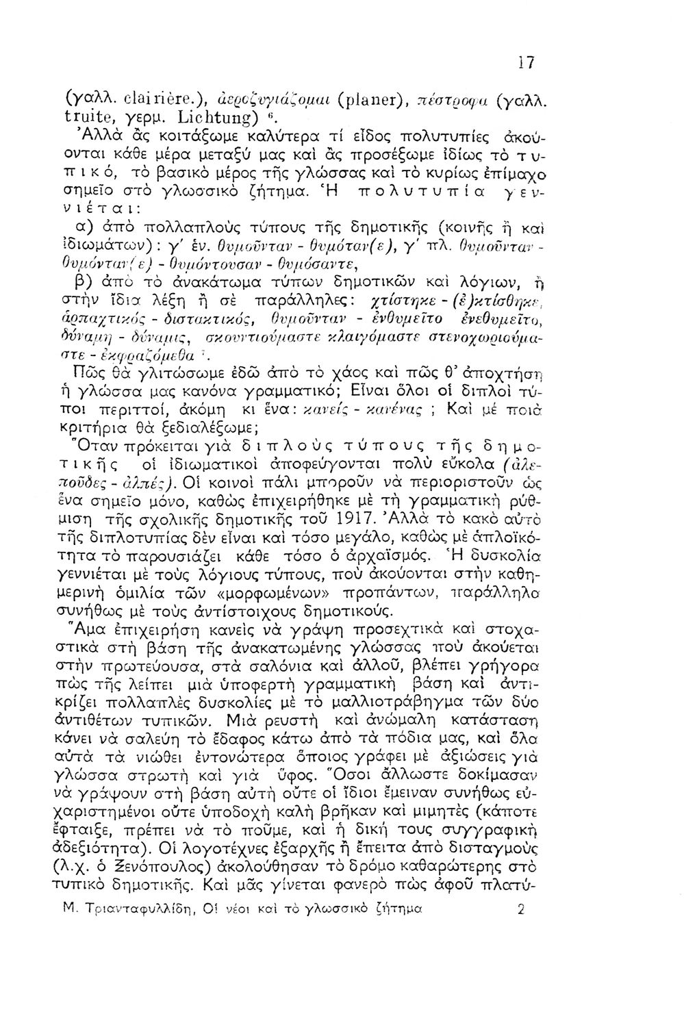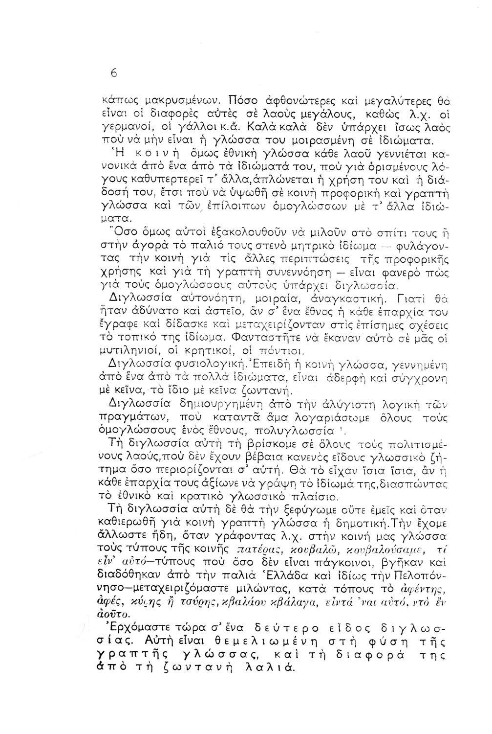 Έκδοση της ομιλίας του Μ. Τριανταφυλλίδη στη Νομική Σχολή Αθηνών στις 27 Μαρτίου 1934 με κάποιες συμπληρώσεις. Αναφέρεται στο γλωσσικό ζήτημα.