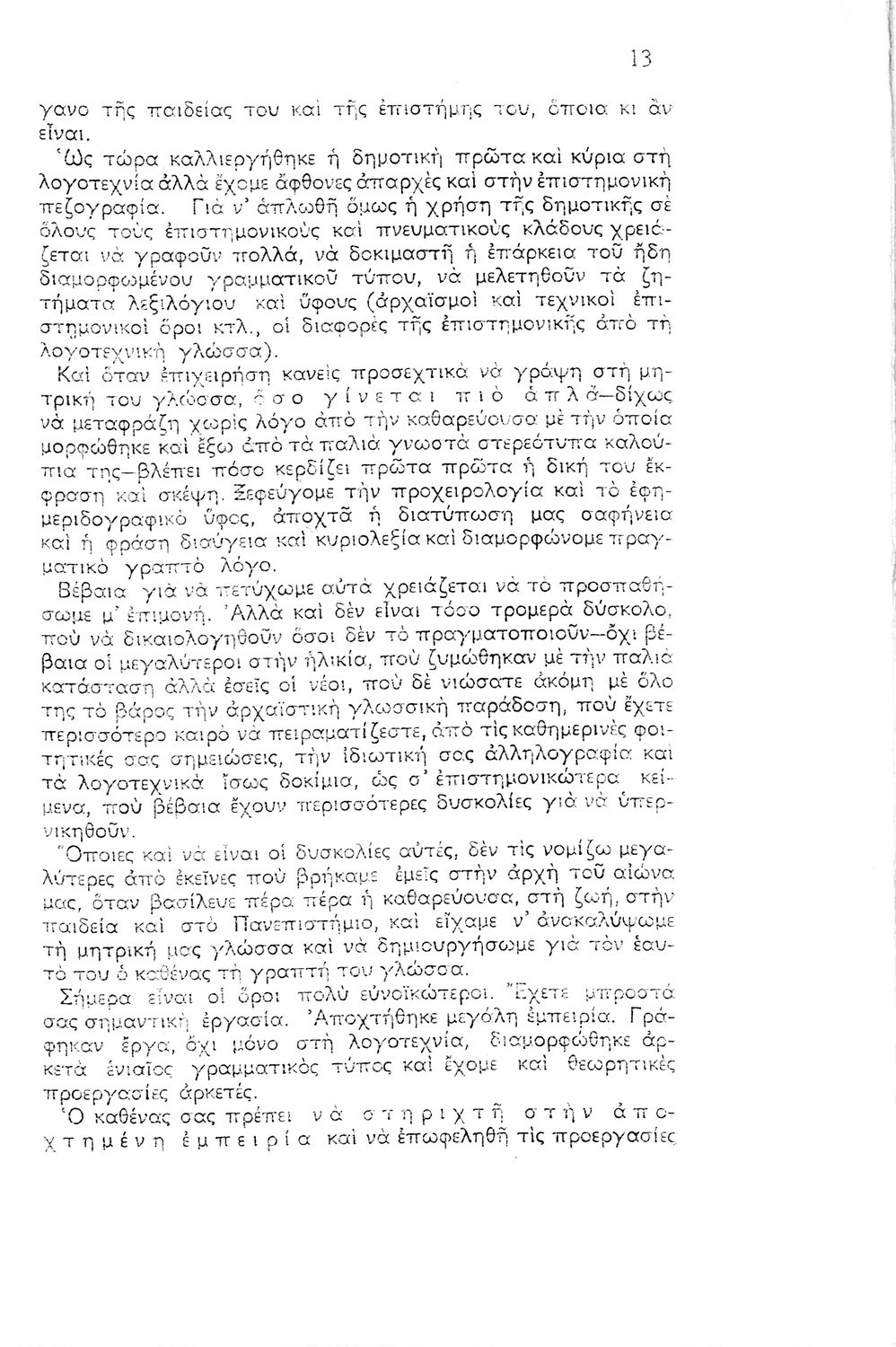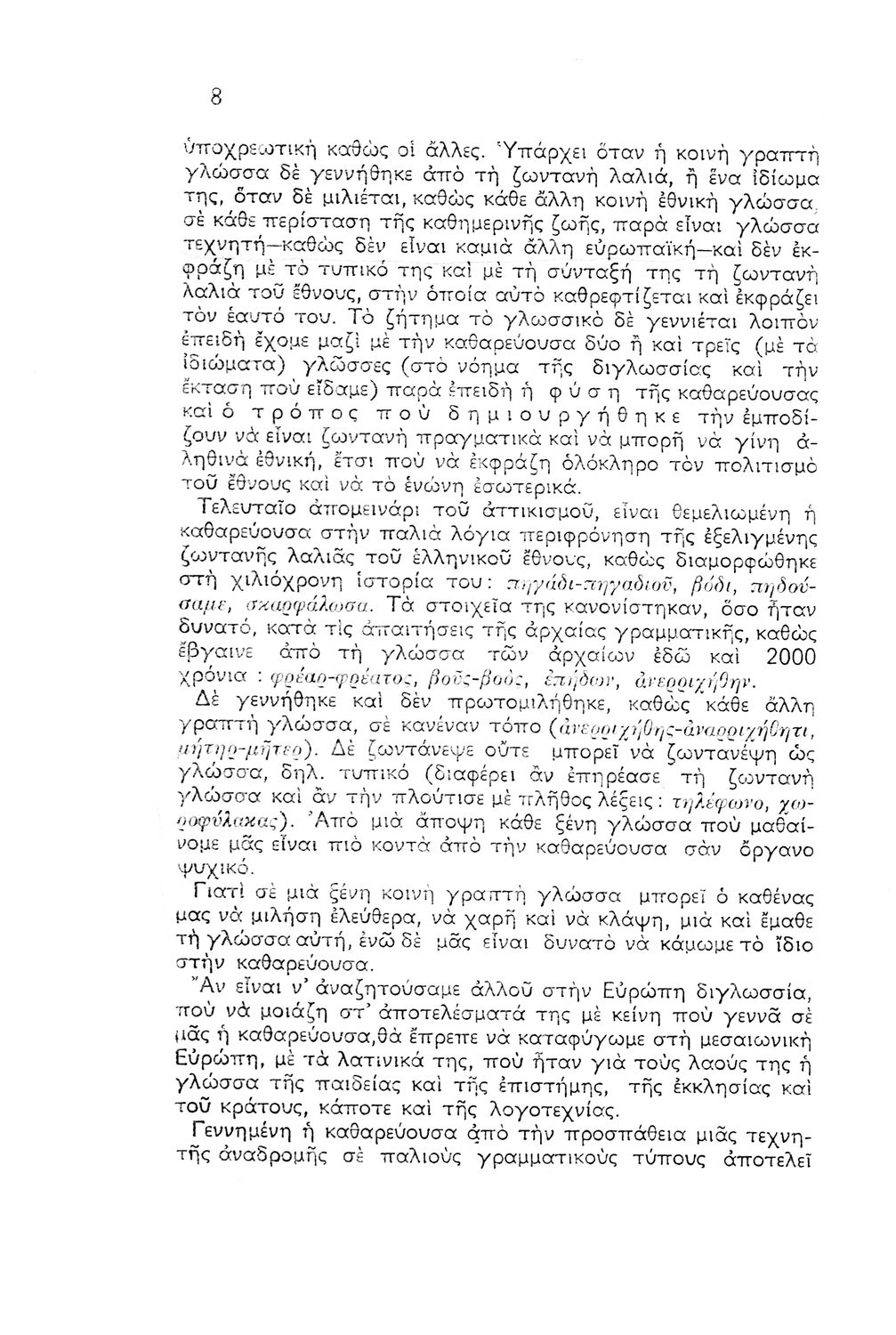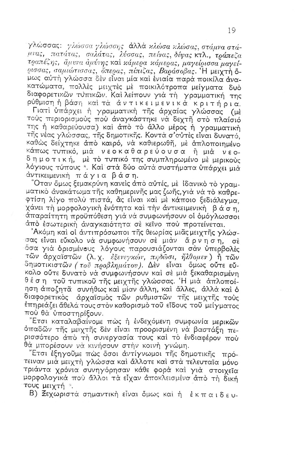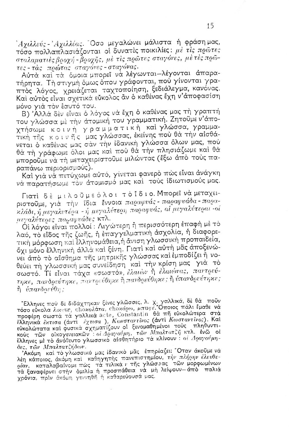 Έκδοση της ομιλίας του Μ. Τριανταφυλλίδη στη Νομική Σχολή Αθηνών στις 27 Μαρτίου 1934 με κάποιες συμπληρώσεις. Αναφέρεται στο γλωσσικό ζήτημα.