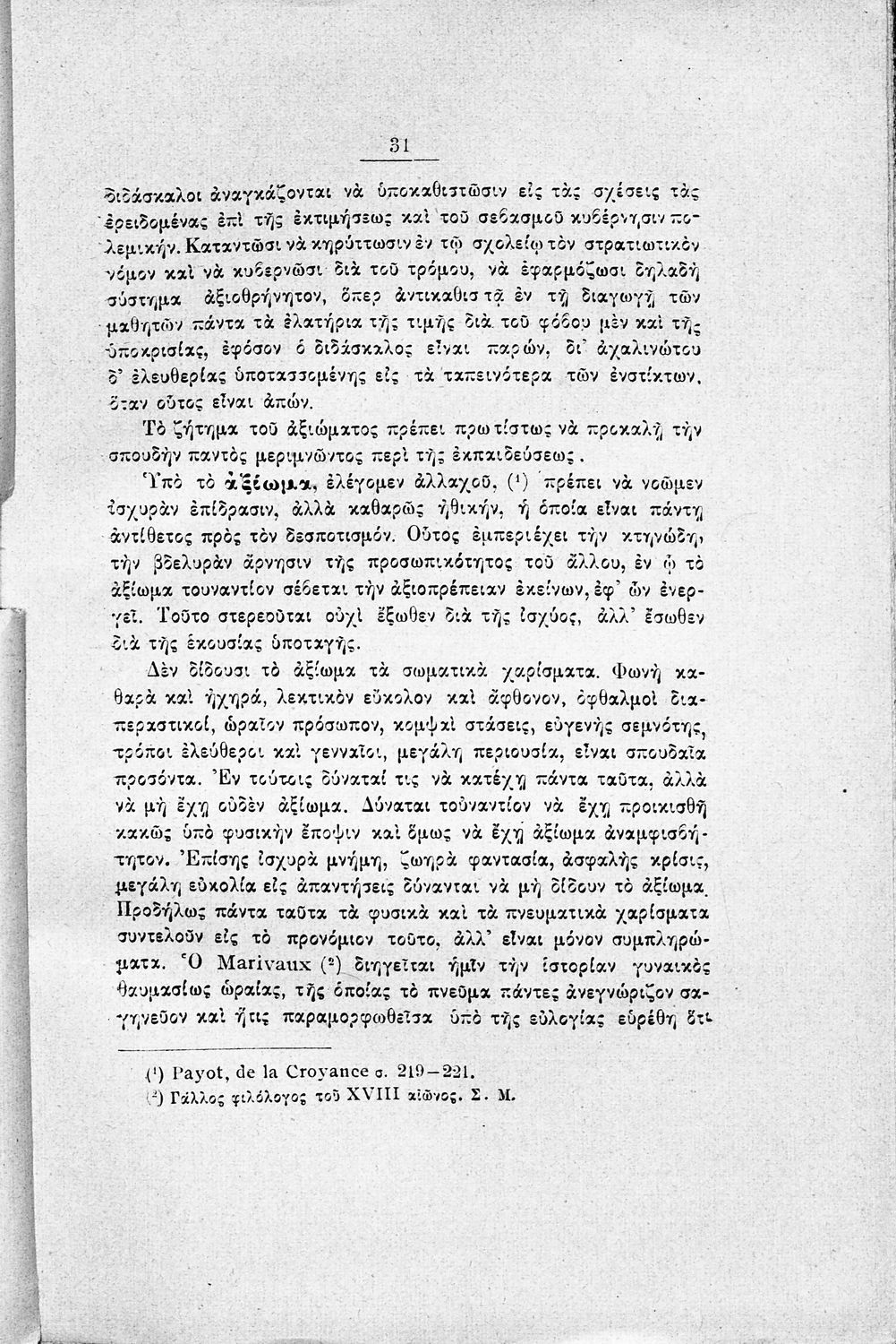 Παιδαγωγικό βοήθημα που απευθύνεται σε Δασκάλους και δασκάλες των Διδασκαλείων. Ο μεταφραστής ήταν εκπαιδευτικός Σύμβουλος ενώ ο συγγραφέας Πρύτανης σε Γαλλικό Παν/μιο.