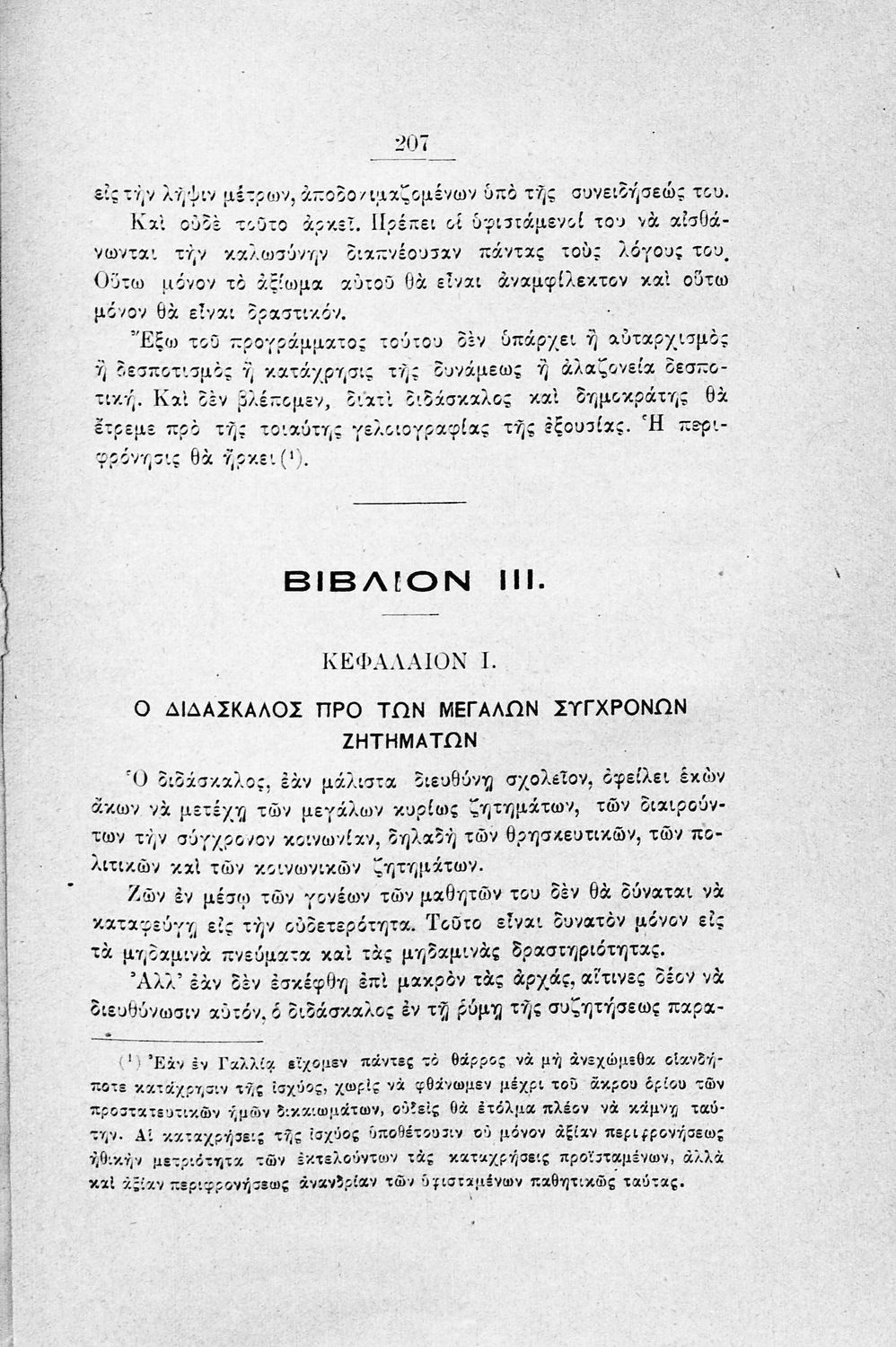 Βαθμίδα εκπαίδευσης: Δευτεροβάθμια Γλώσσα: Καθαρεύουσα Παρουσίαση περιεχομένου: Παιδαγωγικό βοήθημα που απευθύνεται σε Δασκάλους και δασκάλες των Διδασκαλείων. Ο μεταφραστής ήταν εκπαιδευτικός Σύμβουλος ενώ ο συγγραφέας Πρύτανης σε Γαλλικό Παν/μιο. |