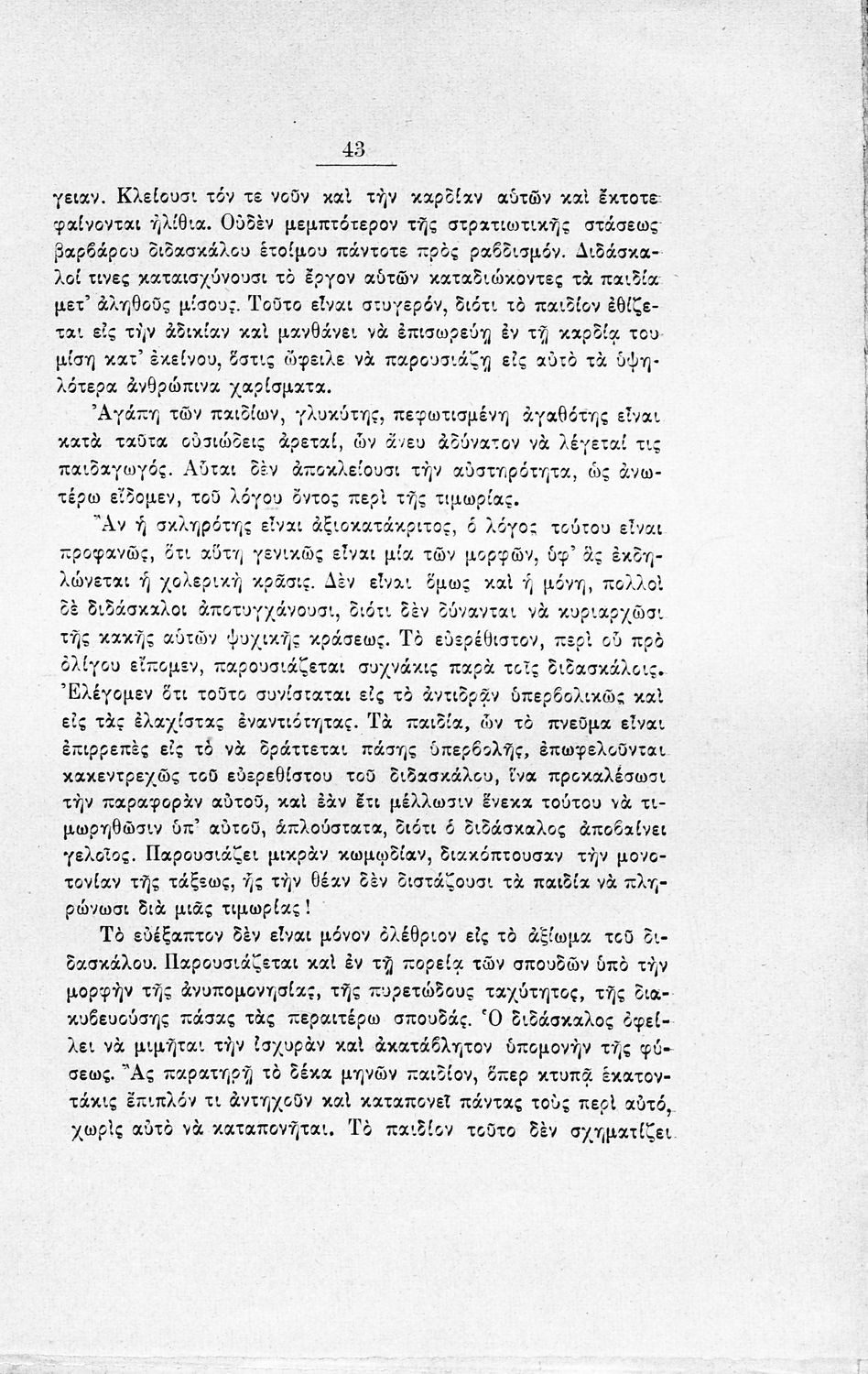 Παιδαγωγικό βοήθημα που απευθύνεται σε Δασκάλους και δασκάλες των Διδασκαλείων. Ο μεταφραστής ήταν εκπαιδευτικός Σύμβουλος ενώ ο συγγραφέας Πρύτανης σε Γαλλικό Παν/μιο.