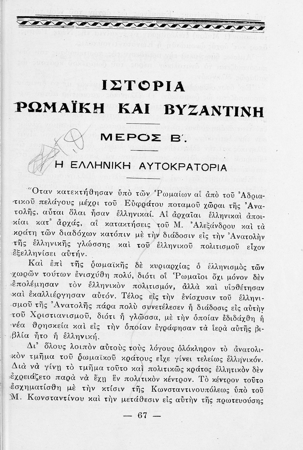 Ιστορία Ρωμαϊκή και Βυζαντινή από της υποταγής της Ελλάδος εις τους Ρωμαίους μέχρι του 8ου αιώνος μ.Χ. Δια την Γ΄ τάξιν των Γυμνασίων