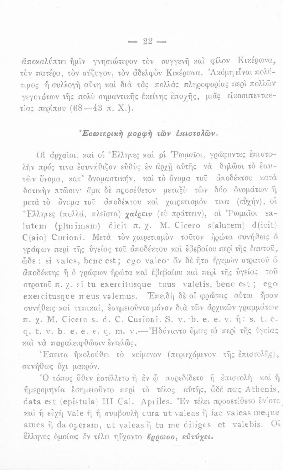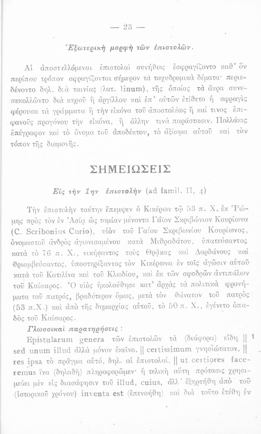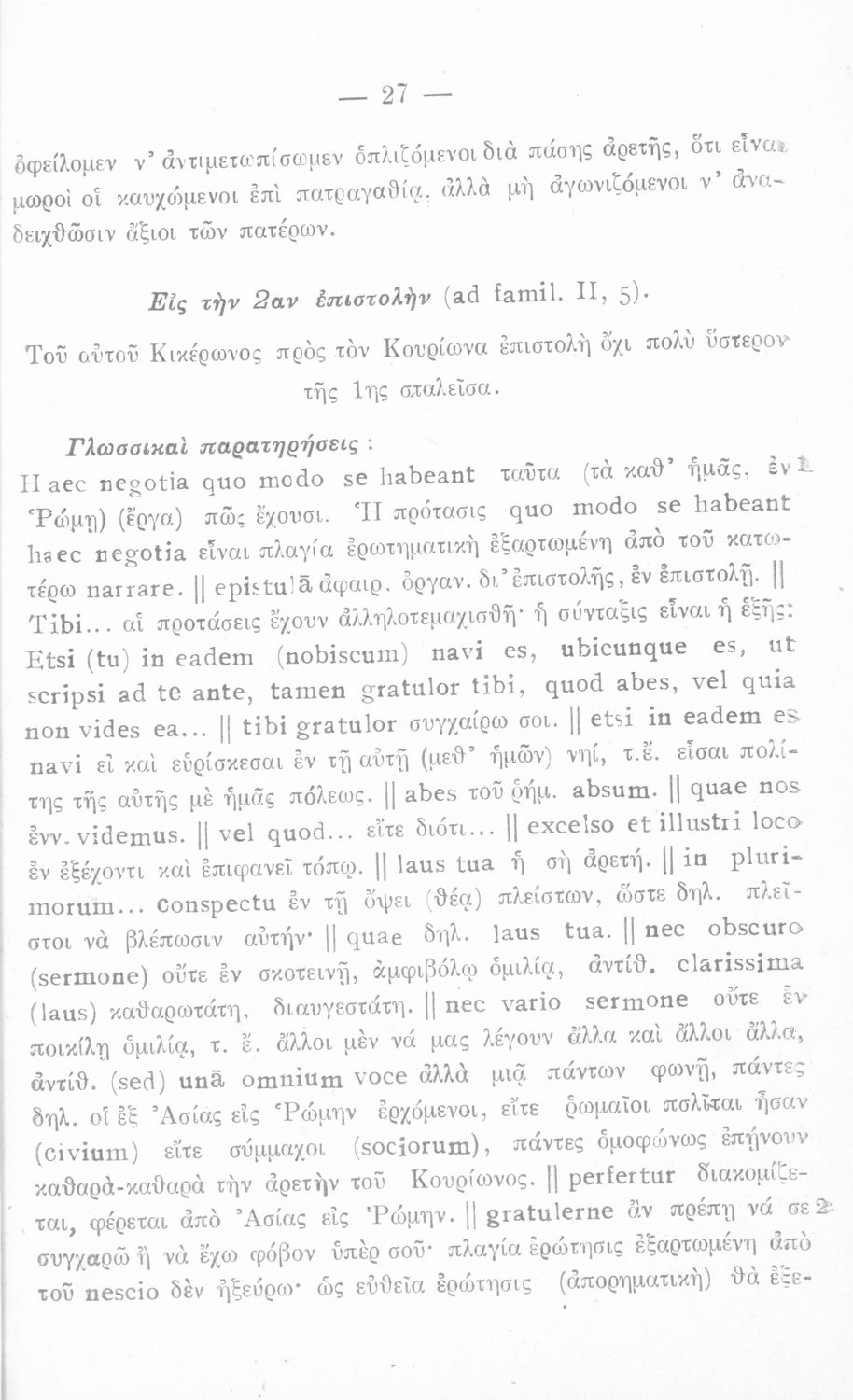 Σχολικό εγχειρίδιο Λατινικών για την Ε΄ Γυμνασίου που περιλαμβάνει ερμηνευτικά σχόλια πάνω στις επιστολές του Κικέρωνα προς τους οικείους του και προς τον Αττικό.