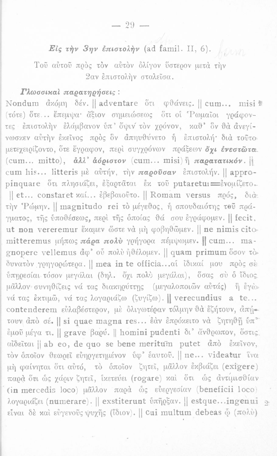 Σχολικό εγχειρίδιο Λατινικών για τη Γ΄ Γυμνασίου που περιέχει κείμενο, εισαγωγή στις επιστολές και σημειώσεις επί των επιστολών. Ο επιμελητής ήταν τακτικός καθηγητής της Λατινικής Φιλολογίας.