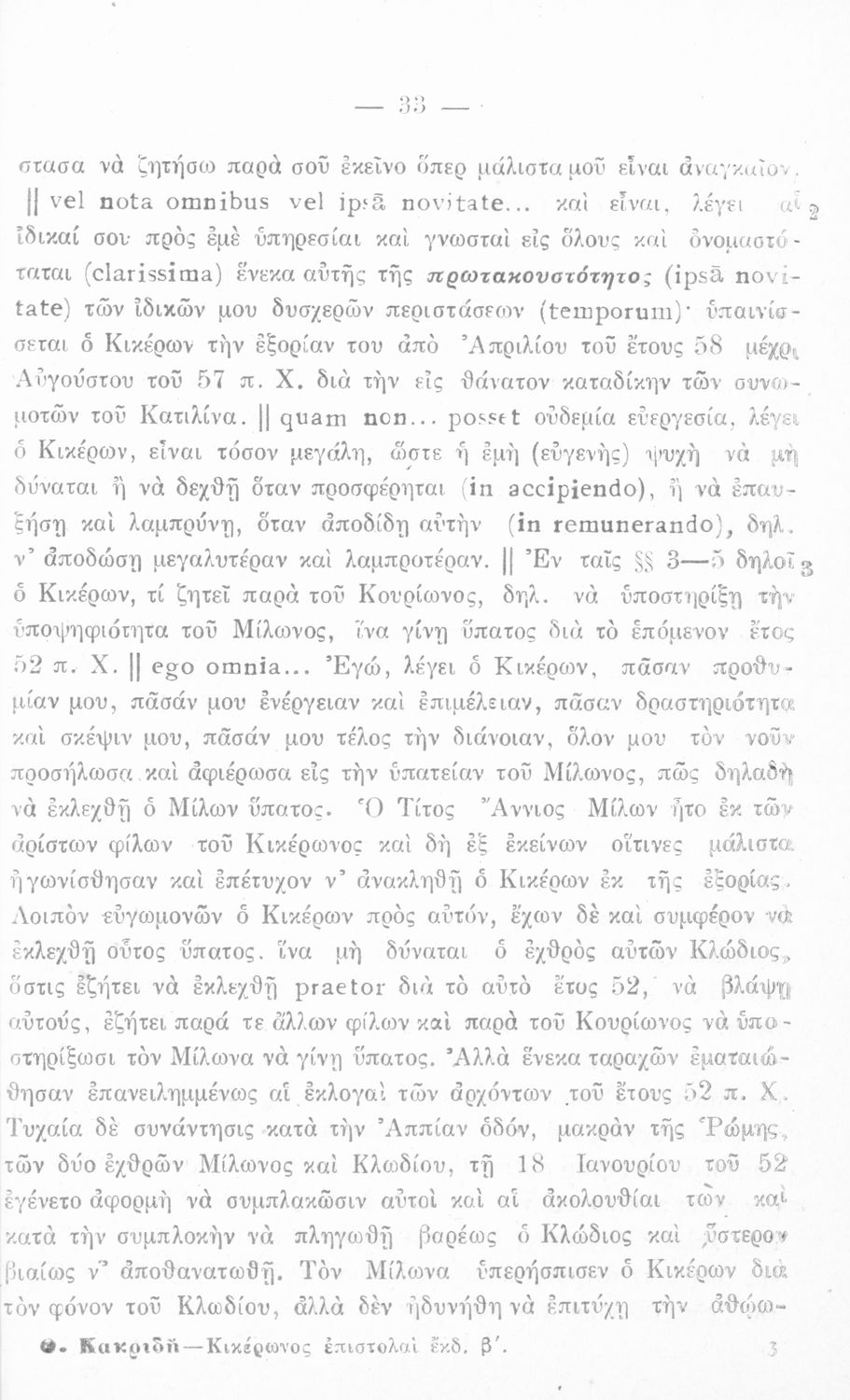 Σχολικό εγχειρίδιο Λατινικών για τη Γ΄ Γυμνασίου που περιλαμβάνει κείμενο, βιογραφικό σημείωμα του Κικέρωνα, εισαγωγικές παρατηρήσεις και ερμηνευτικές σημειώσεις.
