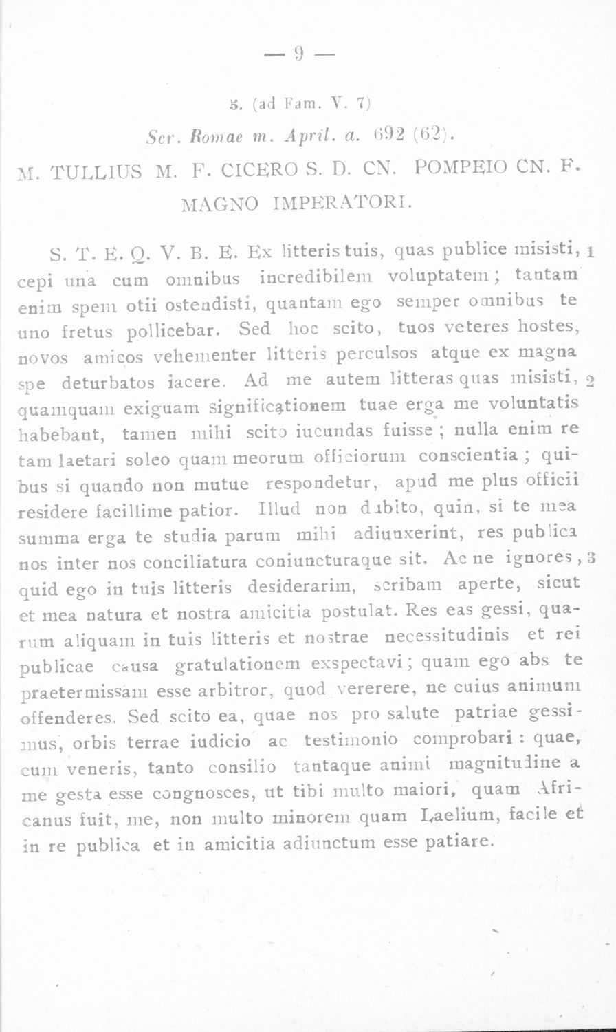Σχολικό εγχειρίδιο Λατινικών για τη Γ΄ Γυμνασίου που περιέχει κείμενο, εισαγωγή στις επιστολές και σημειώσεις επί των επιστολών. Ο επιμελητής ήταν τακτικός καθηγητής της Λατινικής Φιλολογίας.