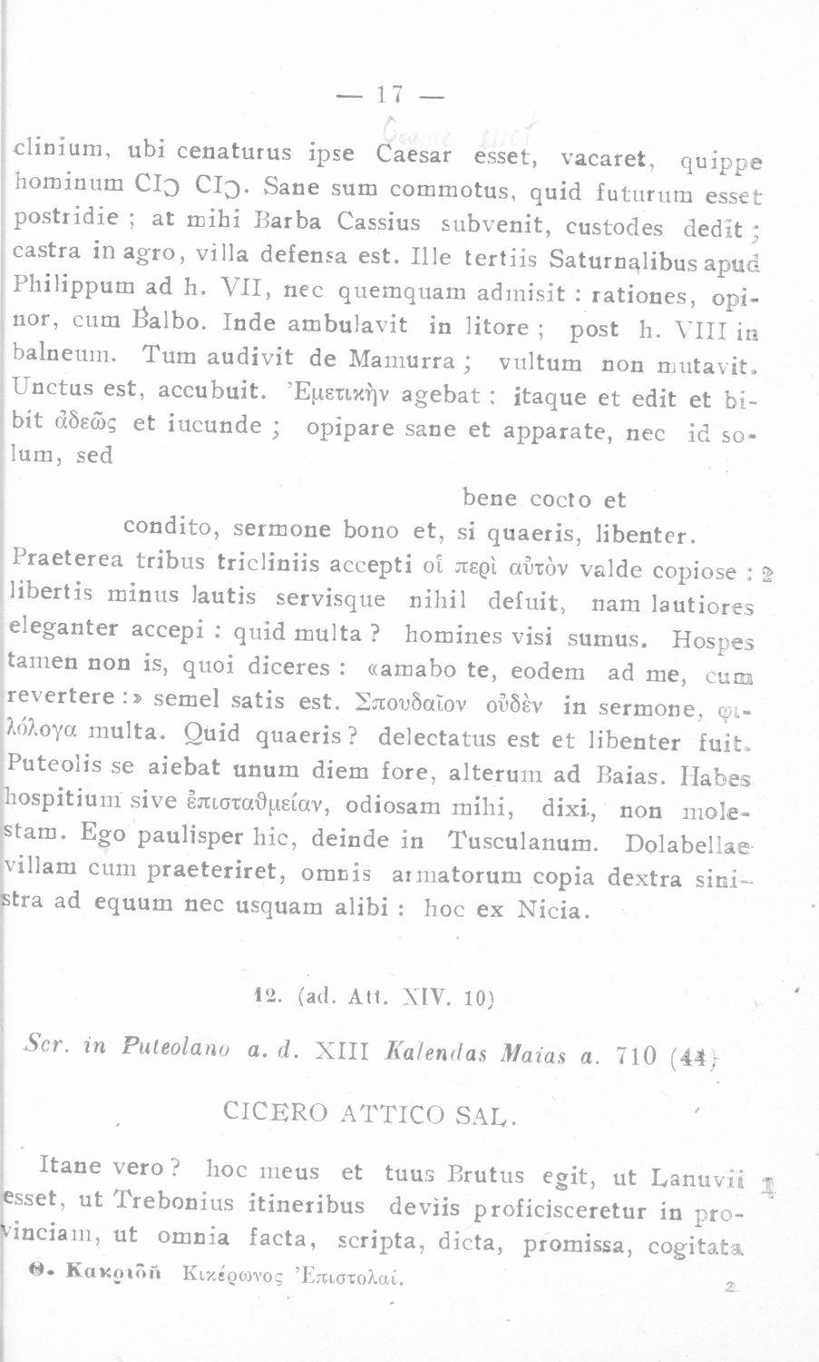 Σχολικό εγχειρίδιο Λατινικών για την Ε΄ Γυμνασίου που περιλαμβάνει επιστολές του Κικέρωνα προς τους οικείους του και προς τον Αττικό, και πραγματολογικά και ερμηνευτικά σχόλια. Ο επιμελητής ήταν τακτικός ...