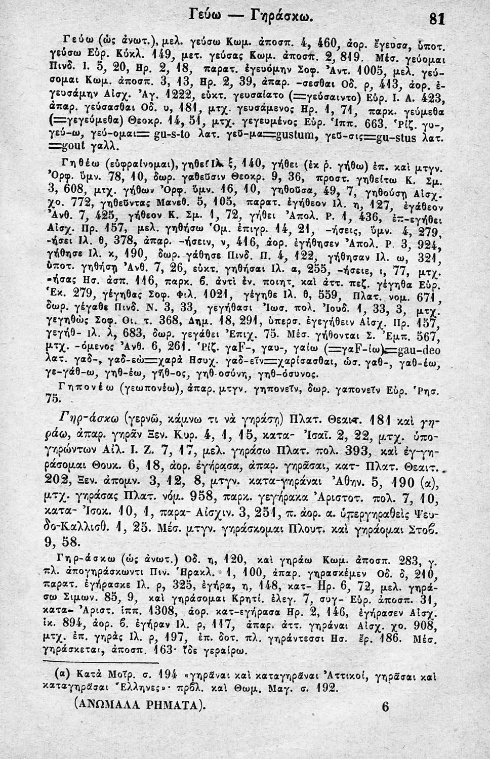 Μαθητικό βοήθημα Αρχαίων Ελληνικών για τους μαθητές των Ελληνικών Σχολείων και των Γυμνασίων που περιέχει κατάλογο ανωμάλων κι ελλιπών ρημάτων.