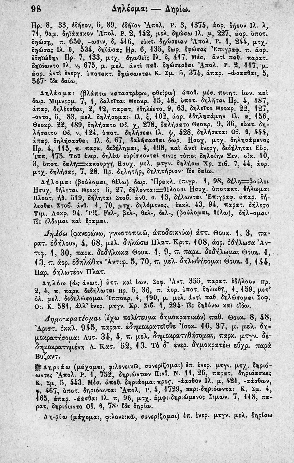 Μαθητικό βοήθημα Αρχαίων Ελληνικών που αποτελεί λεξικό ανωμάλων αρχαίων ρημάτων. Περιέχει και ετυμολογικά σχόλια.