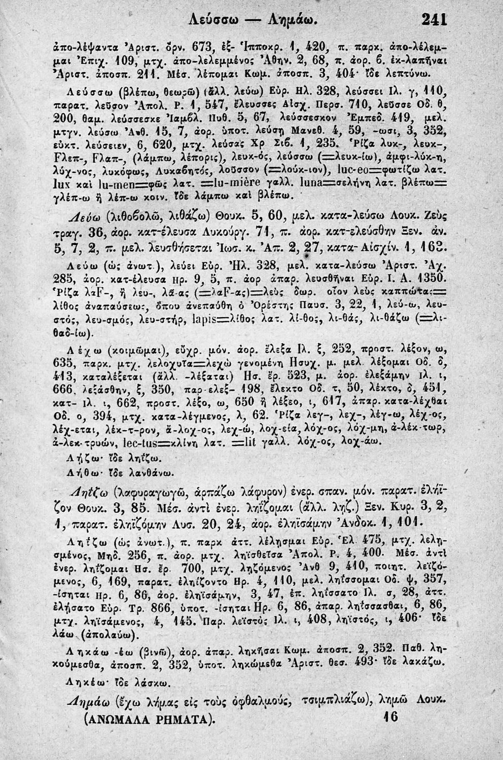 Μαθητικό βοήθημα Αρχαίων Ελληνικών που αποτελεί λεξικό ανωμάλων αρχαίων ρημάτων. Περιέχει και ετυμολογικά σχόλια.