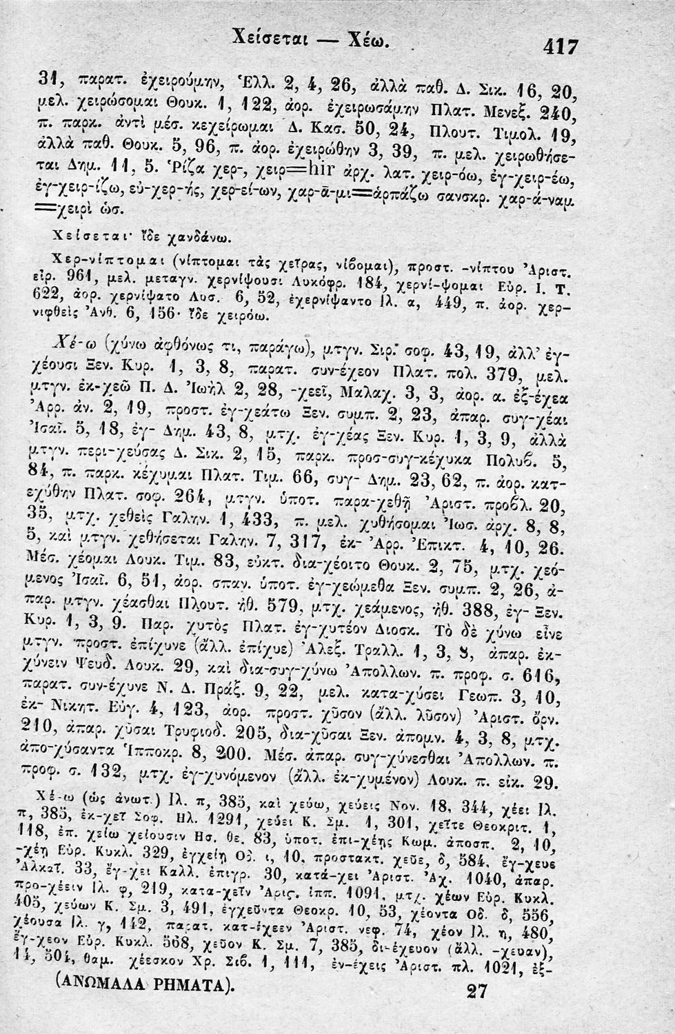 Μαθητικό βοήθημα Αρχαίων Ελληνικών για τους μαθητές των Ελληνικών Σχολείων και των Γυμνασίων που περιέχει κατάλογο ανωμάλων κι ελλιπών ρημάτων.