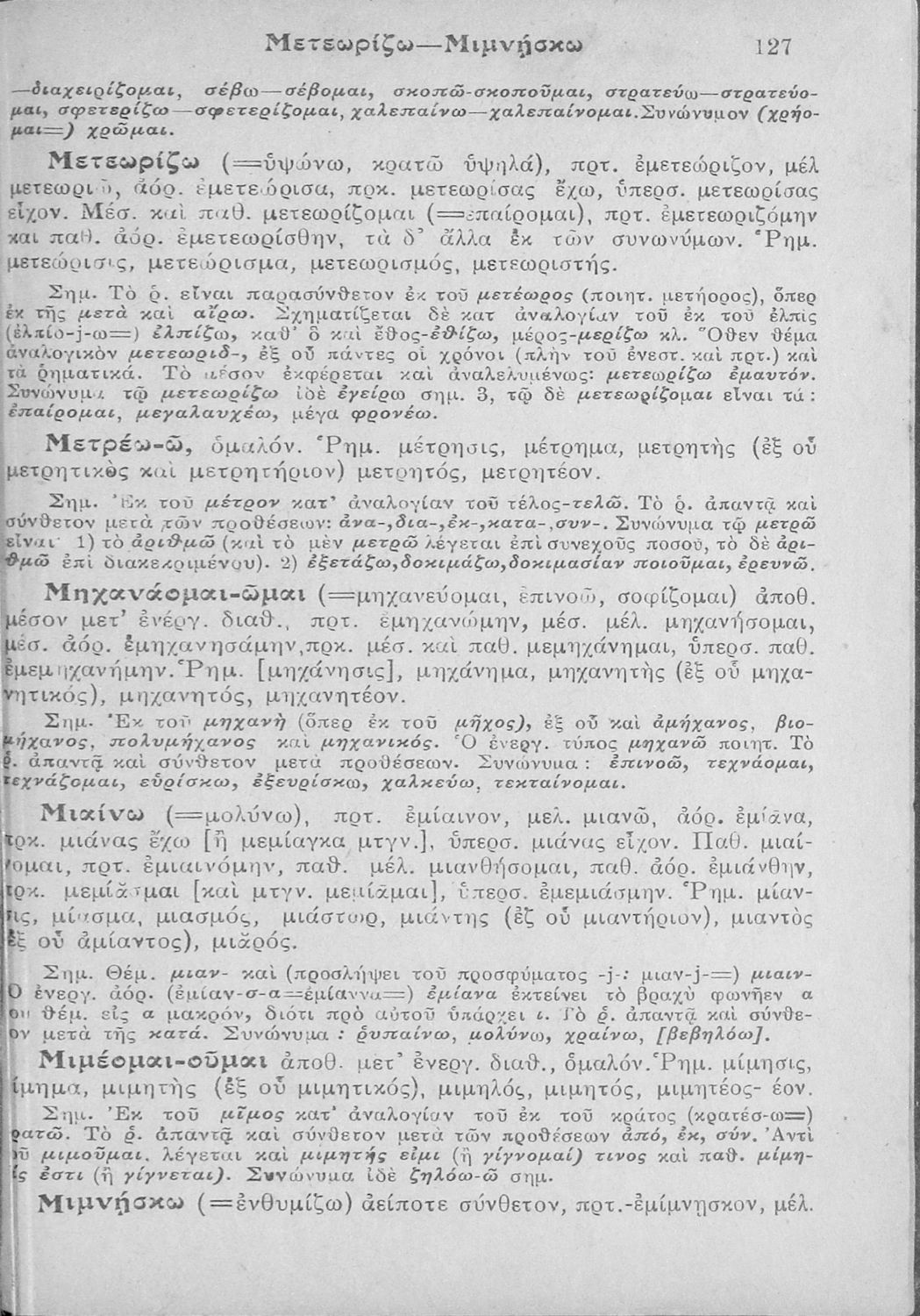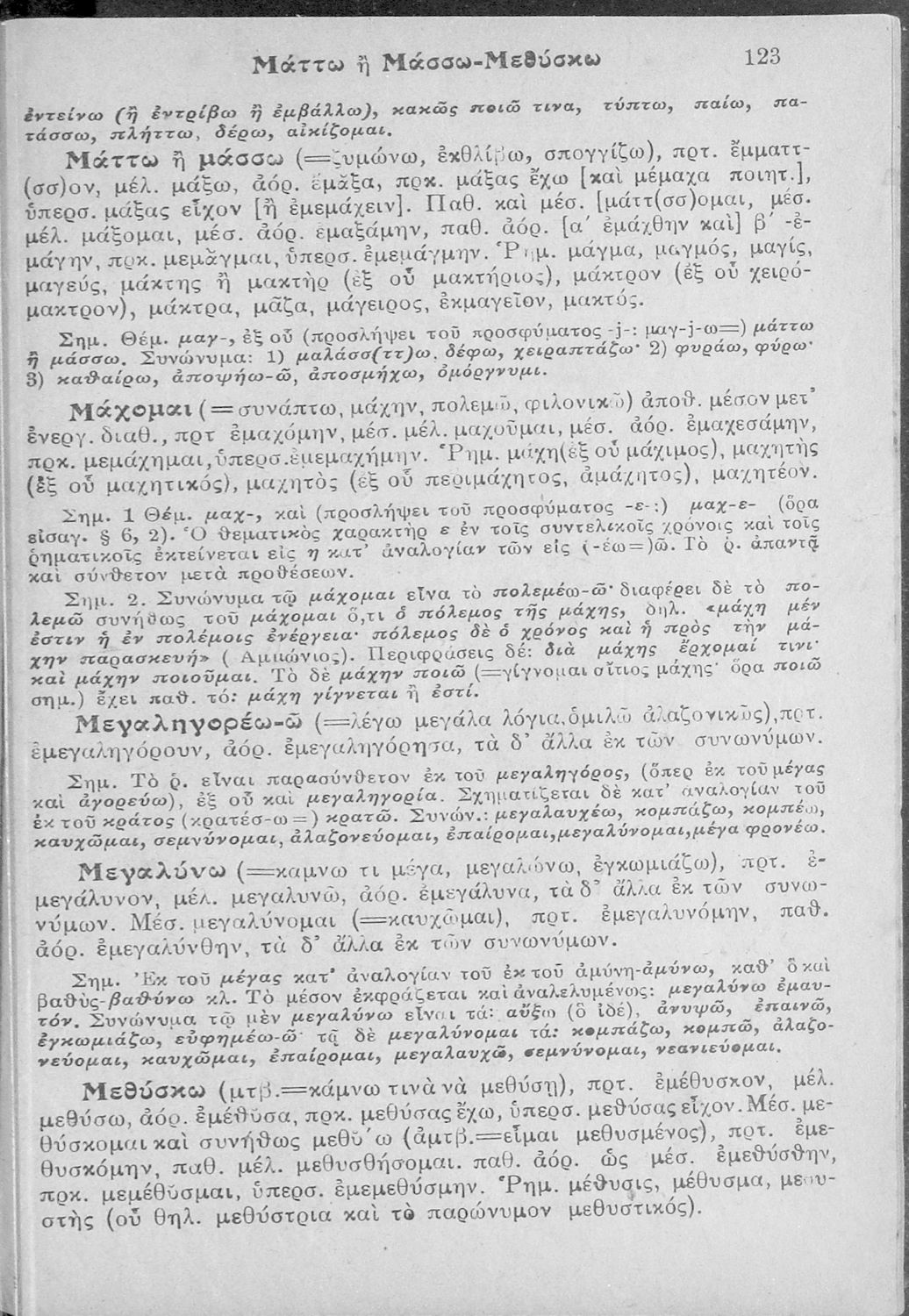 Μαθητικό βοήθημα Αρχαίων Ελληνικών για τα Ελληνικά Σχολεία, Παρθεναγωγεία και Γυμνάσια που περιλαμβάνει γραμματική της αρχαίας ελληνικής και κατάλογο ανωμάλων ρημάτων.