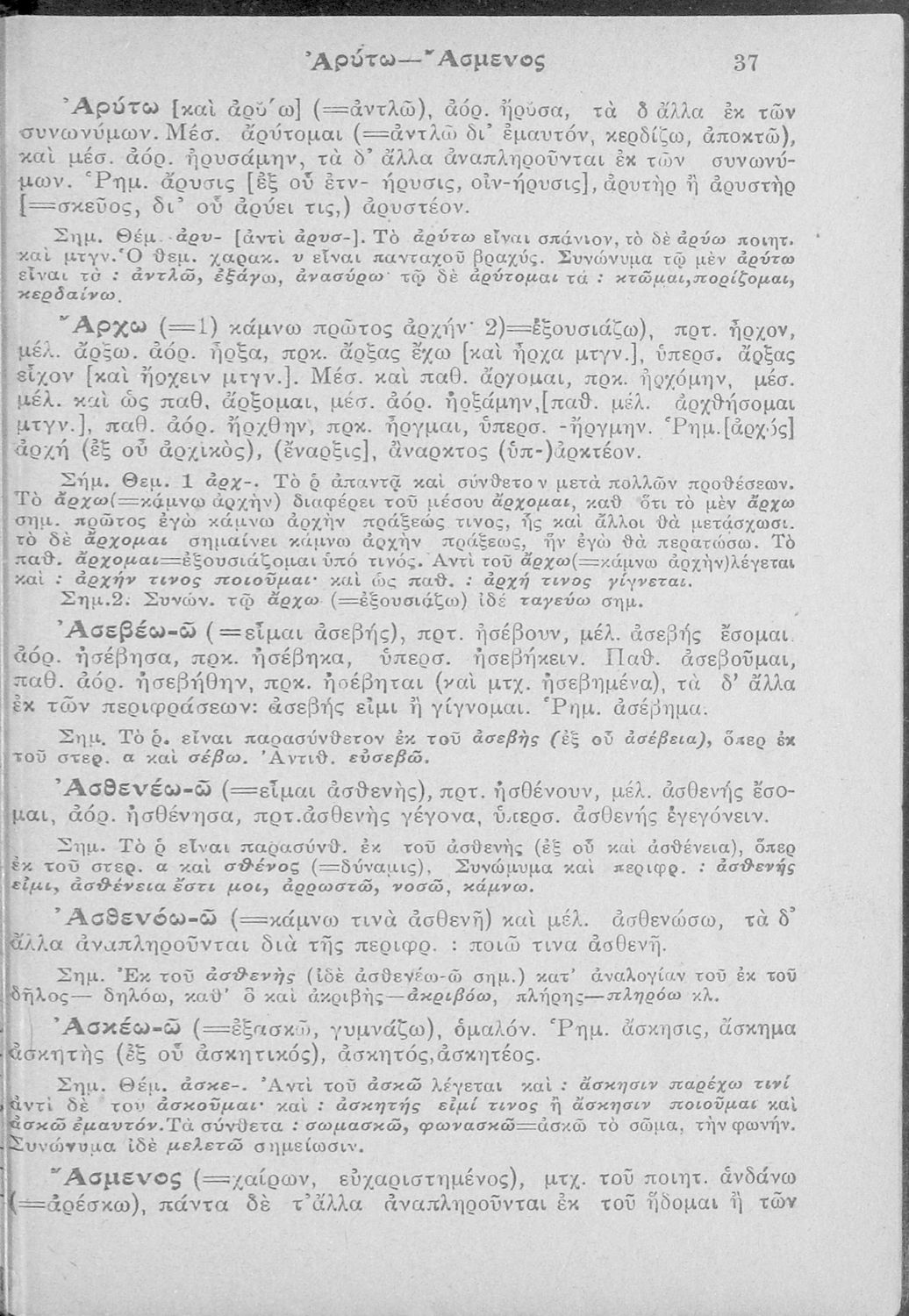 Μαθητικό βοήθημα Αρχαίων Ελληνικών για τους μαθητές των Ημιγυμνασίων, Παρθεναγωγείων, Αστικών σχολείων και Παρθεναγωγείων που περιλαμβάνει κατάλογο ανωμάλων ρημάτων και σειρά σημειώσεων και ασκήσεων για ...