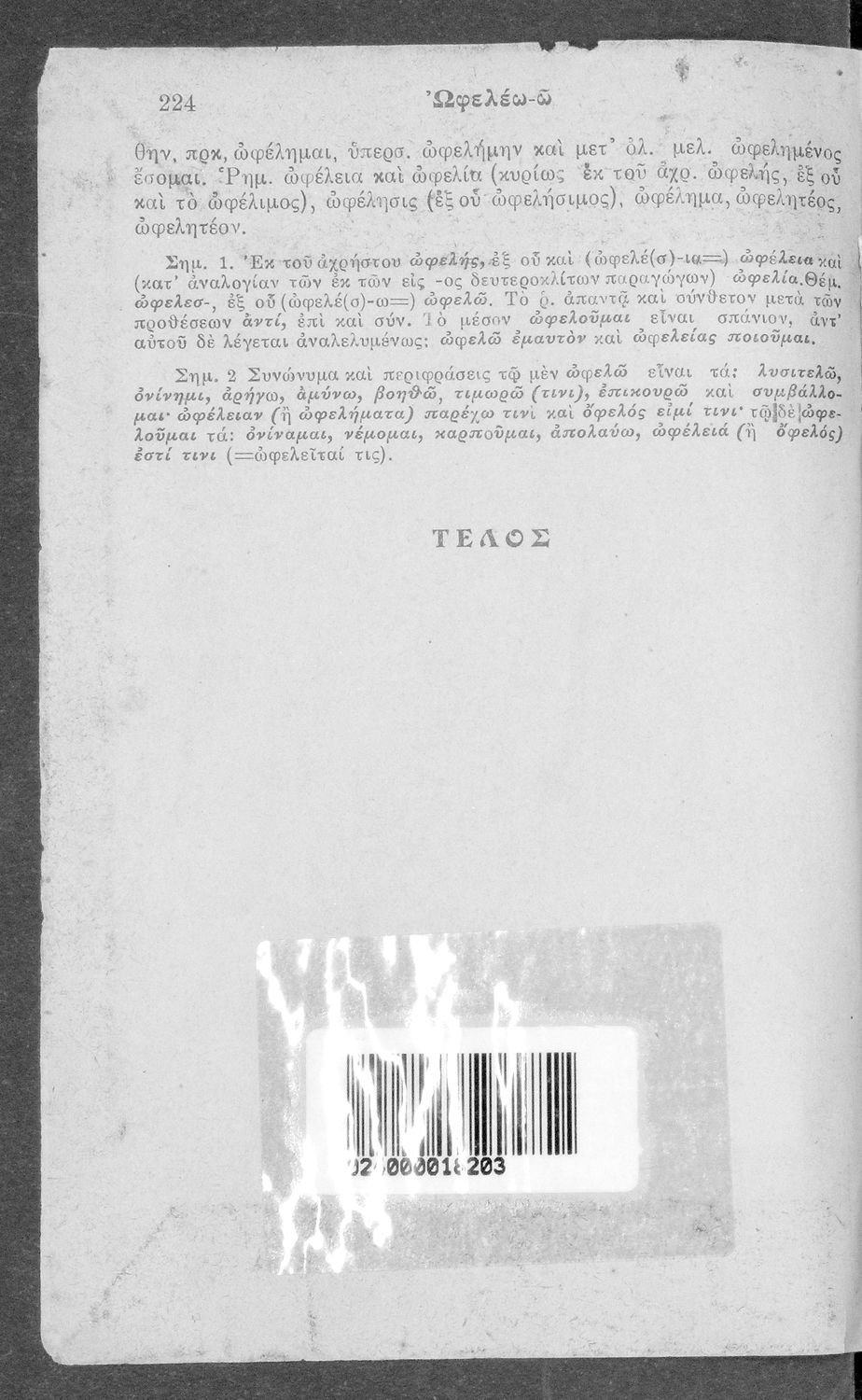 Μαθητικό βοήθημα Αρχαίων Ελληνικών για τα Ελληνικά Σχολεία, Παρθεναγωγεία και Γυμνάσια που περιλαμβάνει γραμματική της αρχαίας ελληνικής και κατάλογο ανωμάλων ρημάτων.