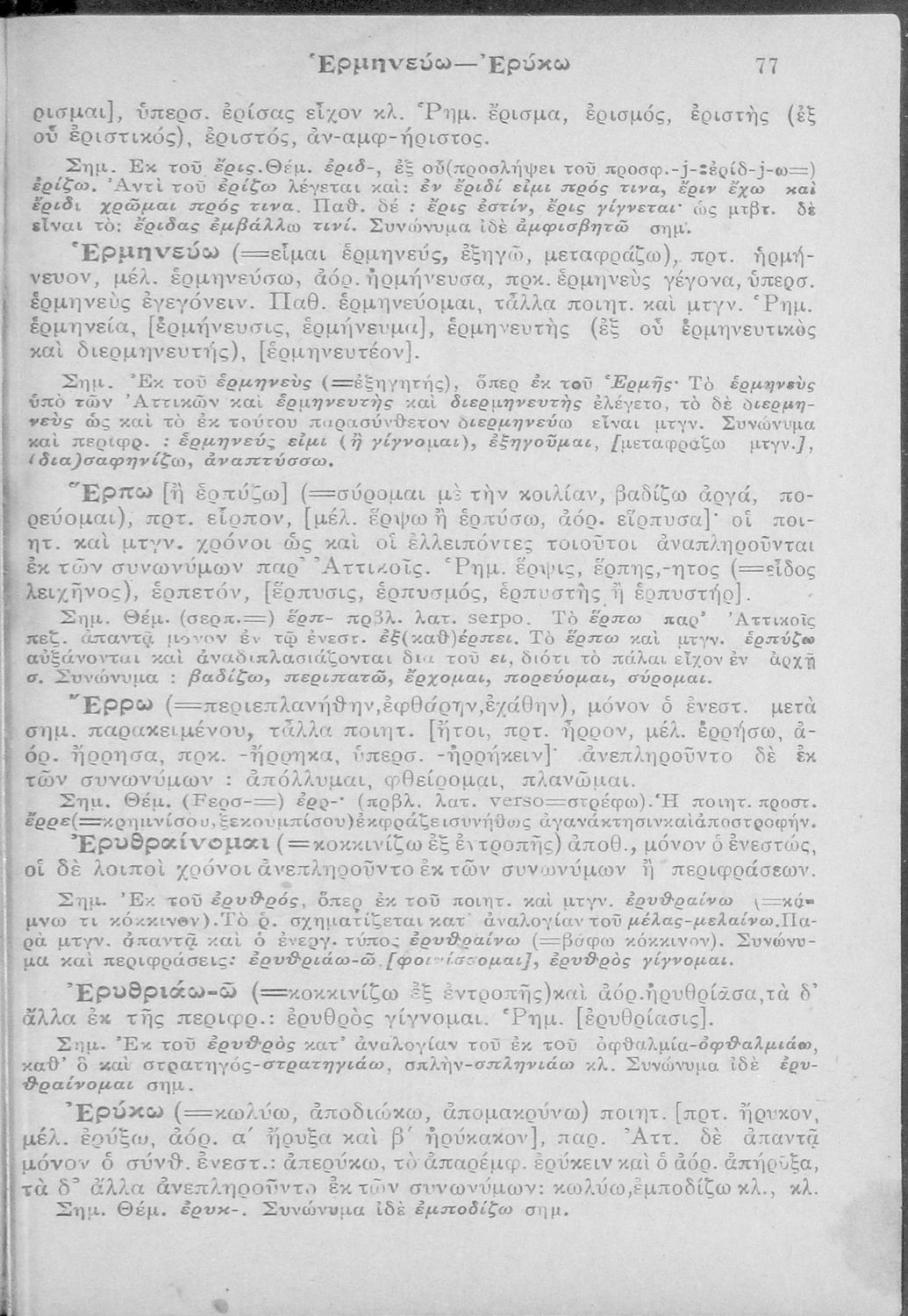 Μαθητικό βοήθημα Αρχαίων Ελληνικών για τους μαθητές των Ημιγυμνασίων, Παρθεναγωγείων, Αστικών σχολείων και Παρθεναγωγείων που περιλαμβάνει κατάλογο ανωμάλων ρημάτων και σειρά σημειώσεων και ασκήσεων για ...