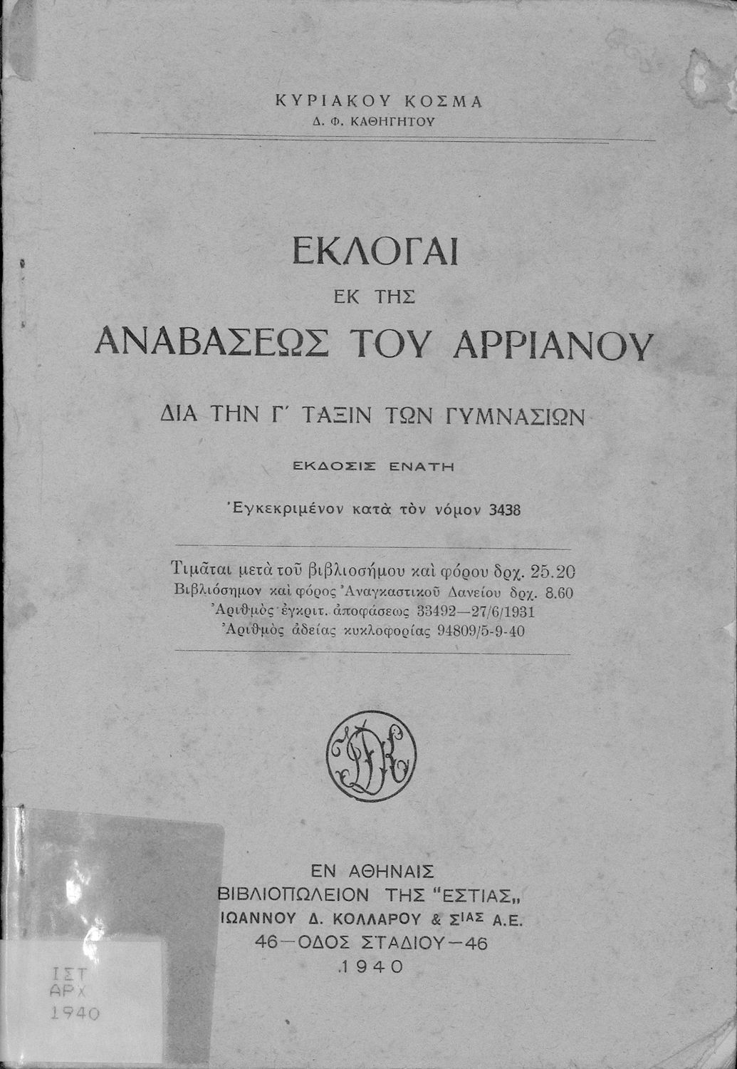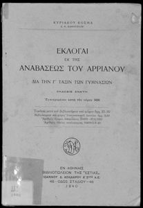 Τίτλος: Εκλογαί εκ της Αναβάσεως του Αρριανού δια την Γ΄ τάξιν των Γυμνασίων