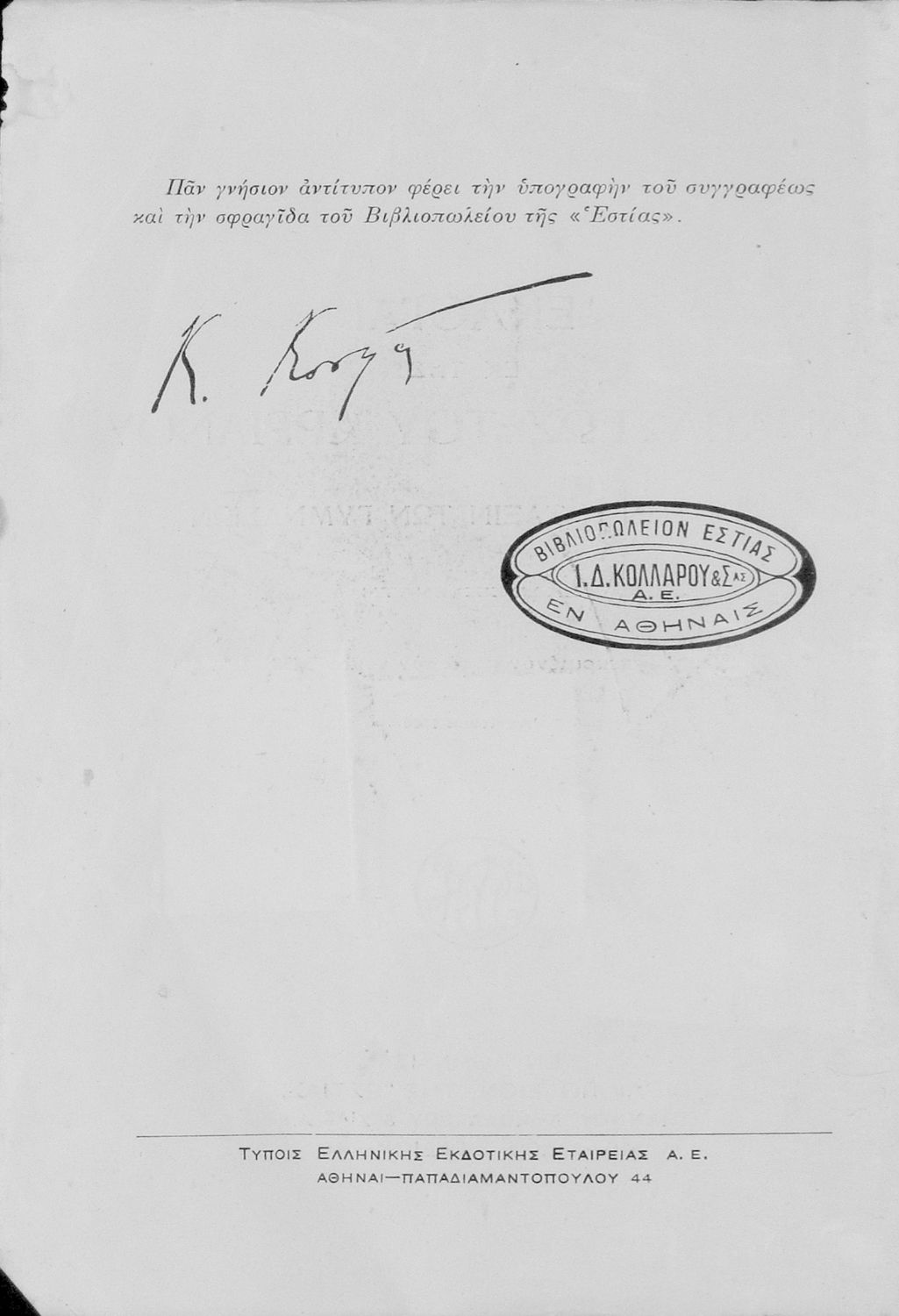 Εκδότης: Ιωάννης Δ. Κολλάρος και ΣΙΑ ΑΕ
