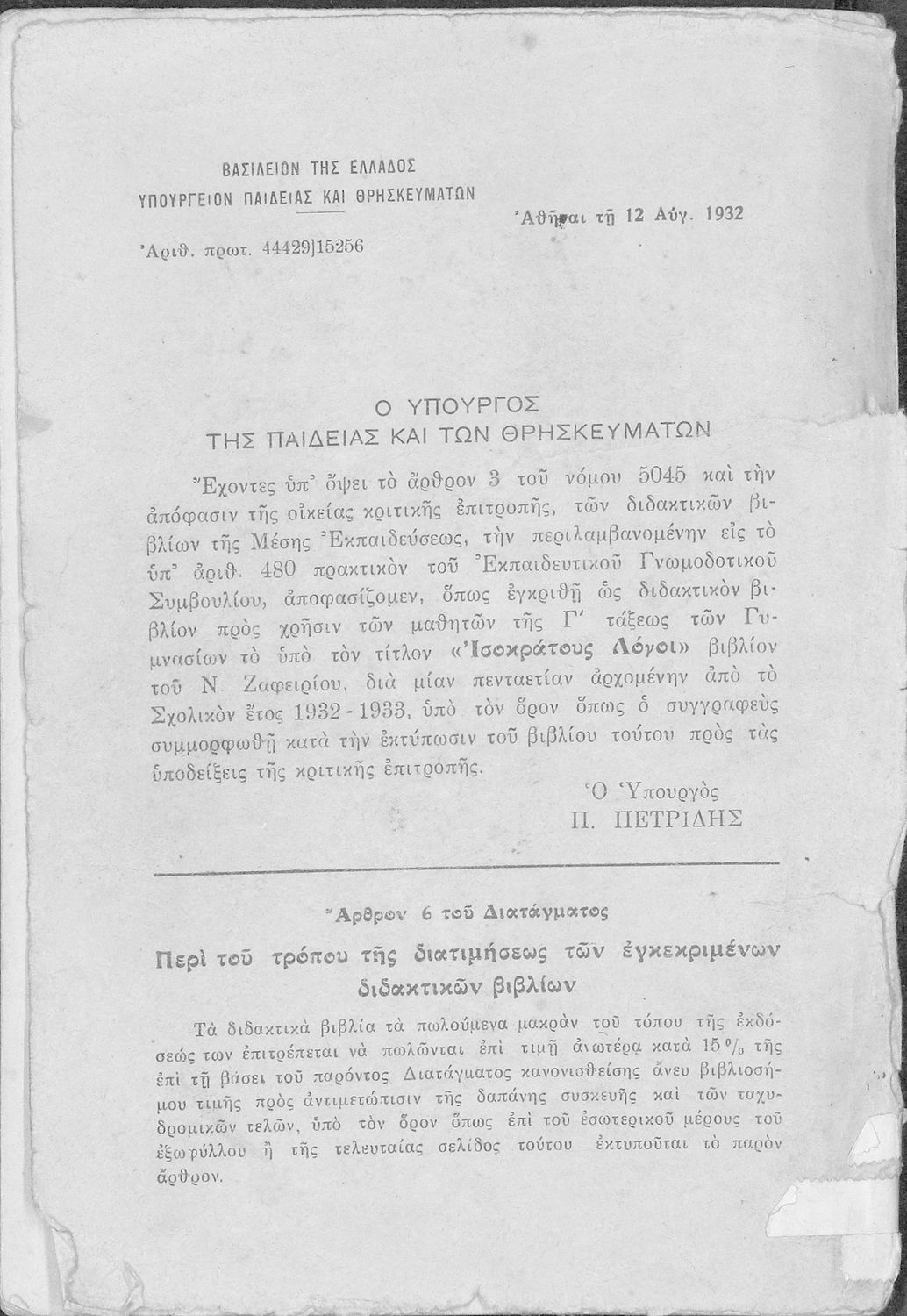 Υπουργική απόφαση / Σύμβαση: 44429/15256/12-8-1932