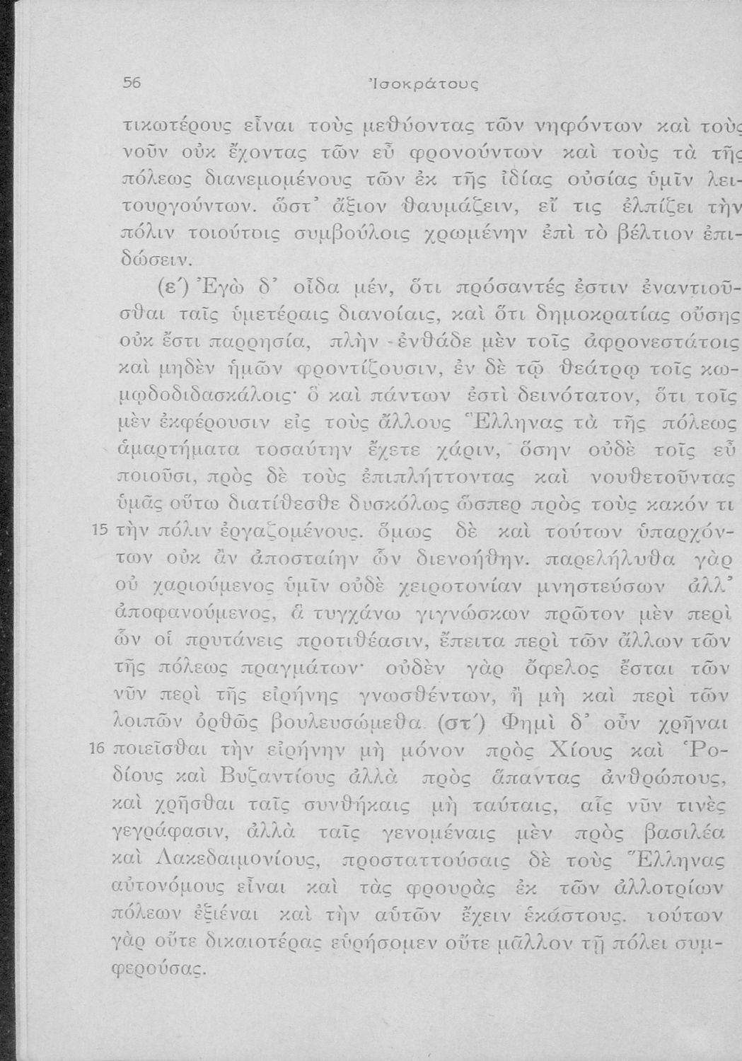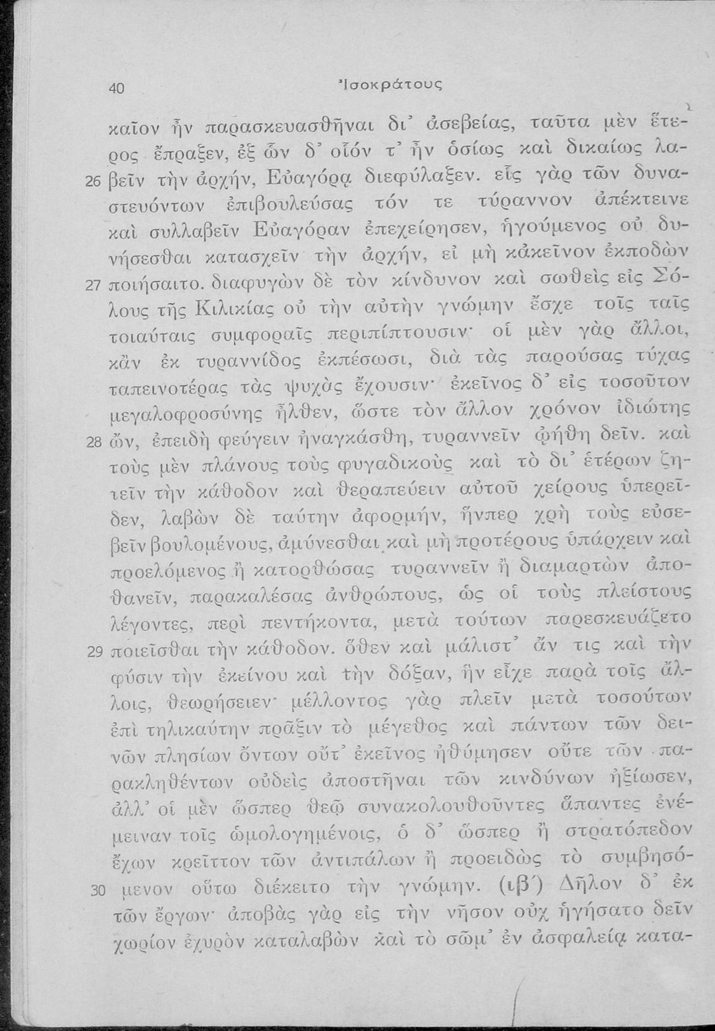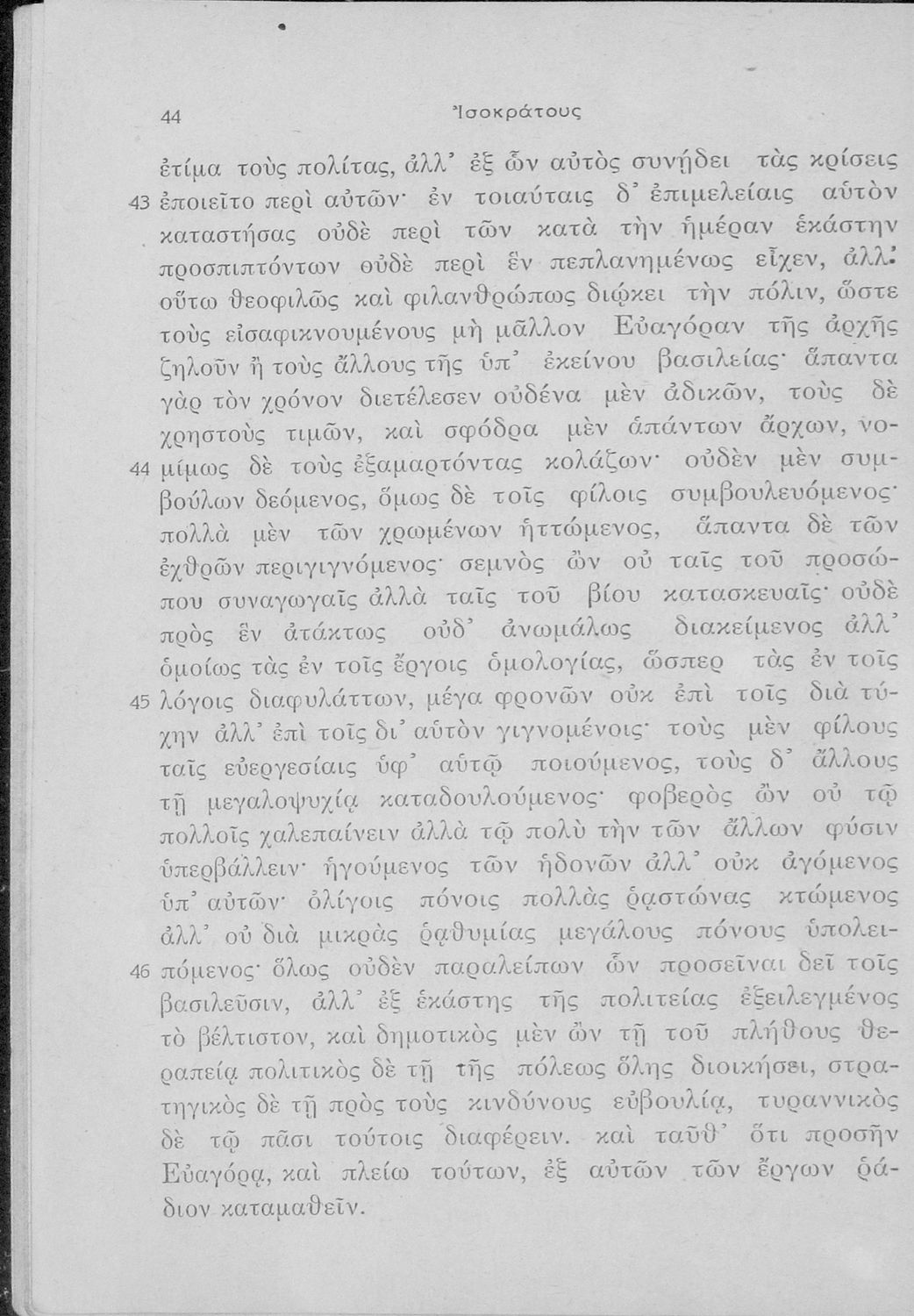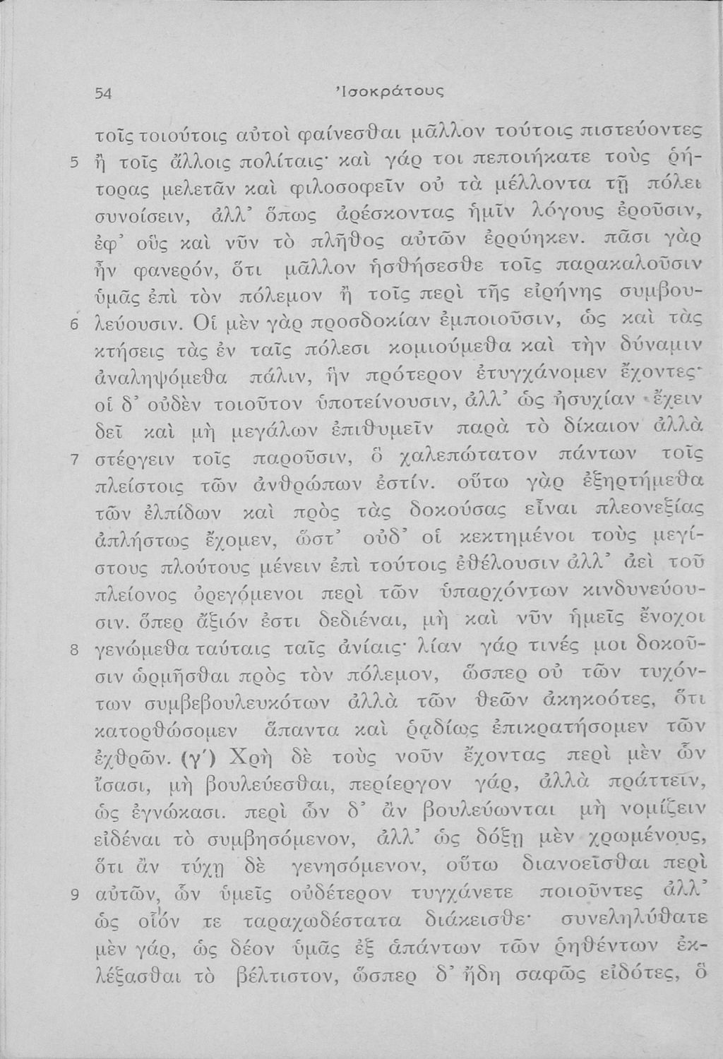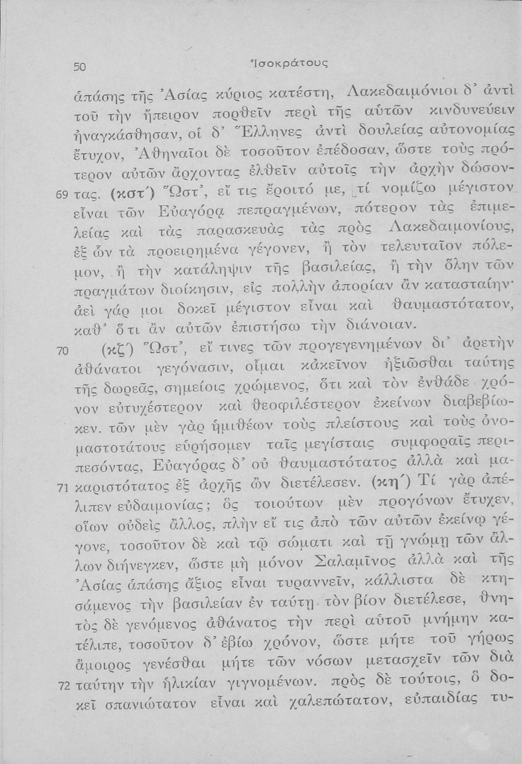 Σχολικό εγχειρίδιο Αρχαίων Ελληνικών Γ΄ Γυμνασίου που περιλαμβάνει εισαγωγή στη ζωή και το έργο του Ισοκράτη,τους Λόγους του Προς Δημόνικον, Προς Νικοκλέα, Περί ειρήνης και Ευαγόρας, και ερμηνευτικές σημειώσεις.