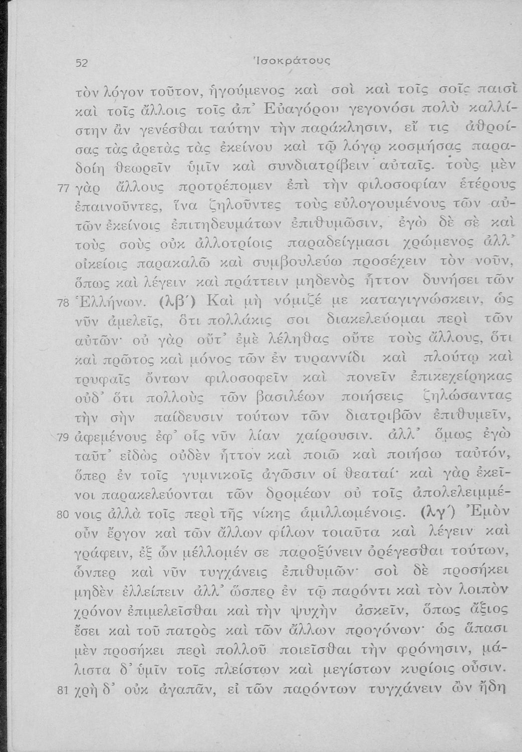 Μαθητικό βοήθημα Αρχαίων Ελληνικών Ε' Γυμνασίου που περιλαμβάνει μετάφραση των Λόγων του Ισοκράτη Προς Δημόνικον, Προς Νικοκλέα και Ευαγόρας, ερμηνευτικά, γραμματικά και συντακτικά σχόλια.
