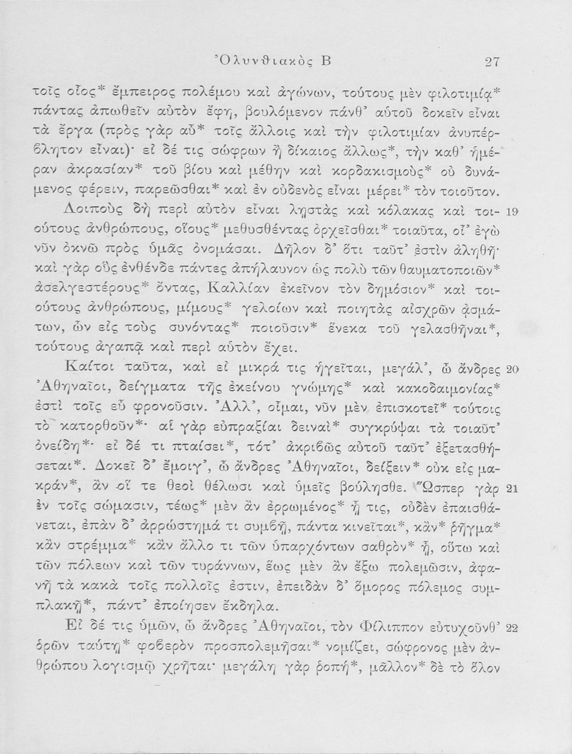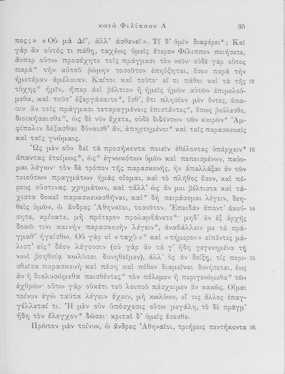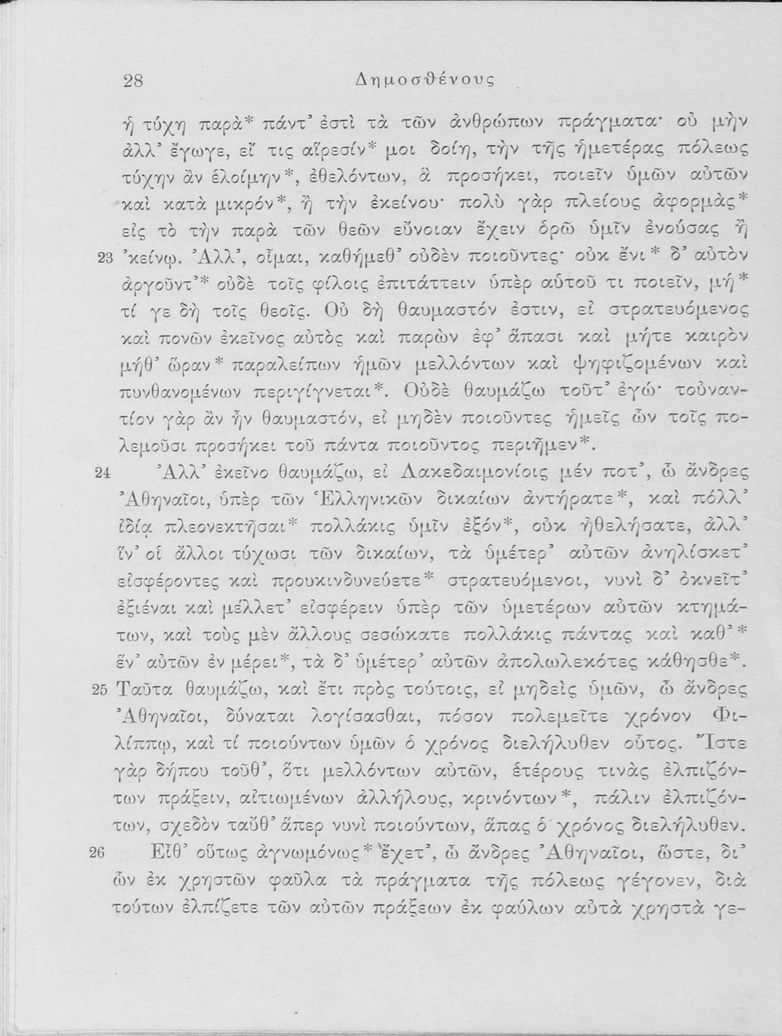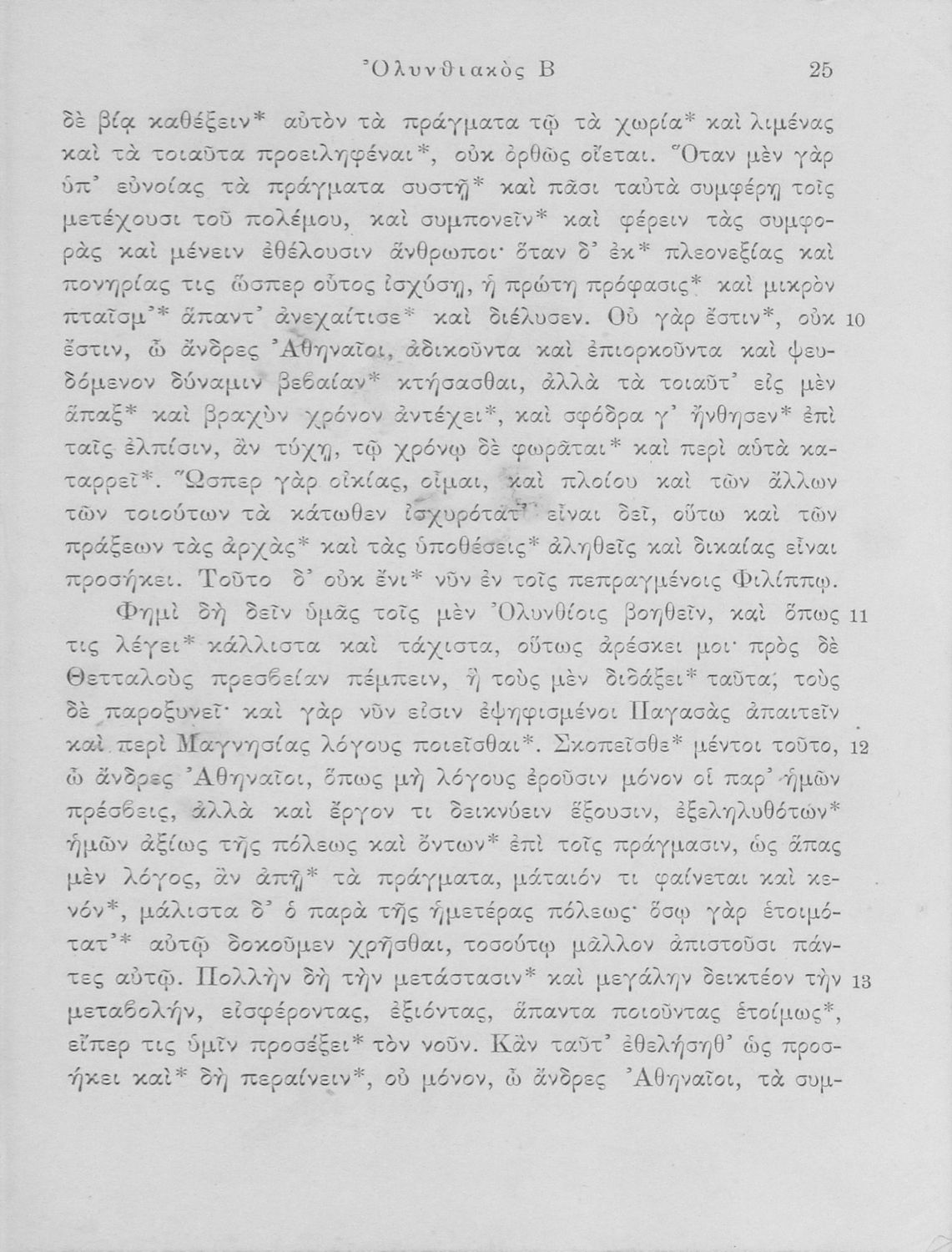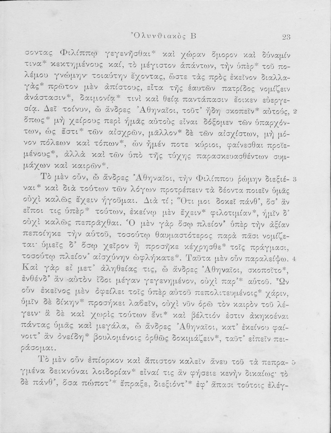Σχολικό εγχειρίδιο Αρχαίων Ελληνικών Δ΄ και Ε΄ Γυμνασίου που περιέχει τους Ολυνθιακούς Α΄ και Β΄ και τους Φιλιππικούς Α΄ και Β΄ του Δημοσθένη, βιογραφικό σημείωμα, λεξιλόγιο και ερμηνευτικά και ετυμολογικά σχόλια.