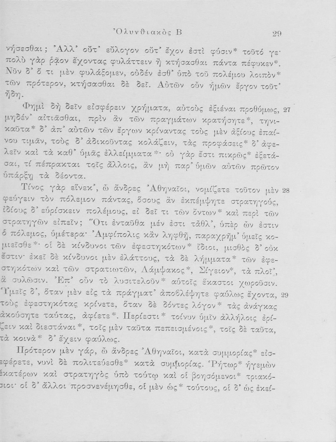 Σχολικό εγχειρίδιο Αρχαίων Ελληνικών Ε΄ Γυμνασίου που περιέχει τους Ολυνθιακούς Α΄ και Β΄ και τους Φιλιππικούς Α΄ και Β΄ του Δημοσθένη, βιογραφικό σημείωμα, λεξιλόγιο και ερμηνευτικά και ετυμολογικά σχόλια.