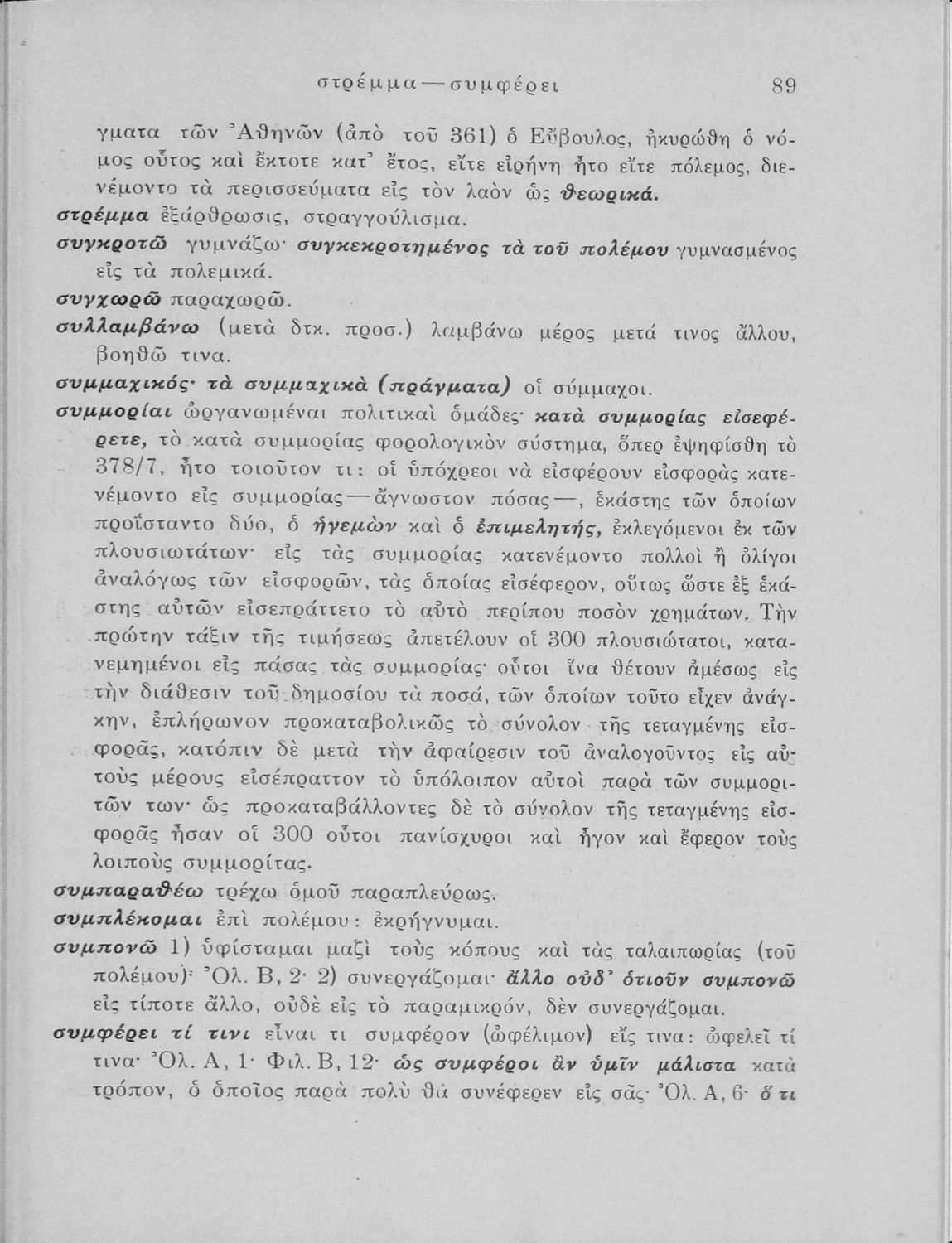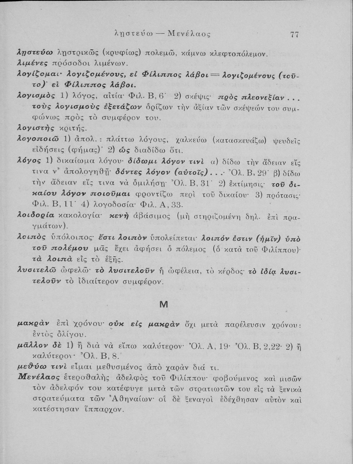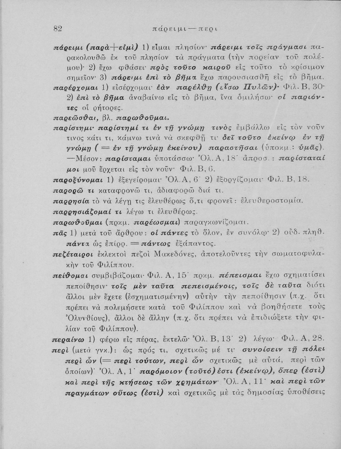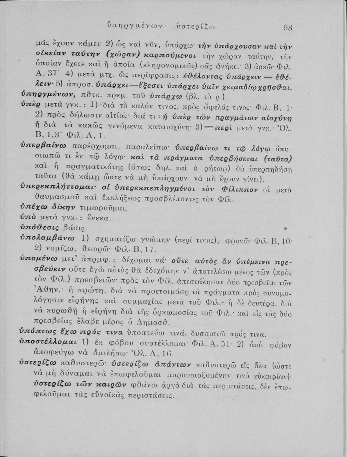 Σχολικό εγχειρίδιο Αρχαίων Ελληνικών Δ΄ και Ε΄ Γυμνασίου που περιέχει τους Ολυνθιακούς Α΄ και Β΄ και τους Φιλιππικούς Α΄ και Β΄ του Δημοσθένη, βιογραφικό σημείωμα, λεξιλόγιο και ερμηνευτικά και ετυμολογικά σχόλια.
