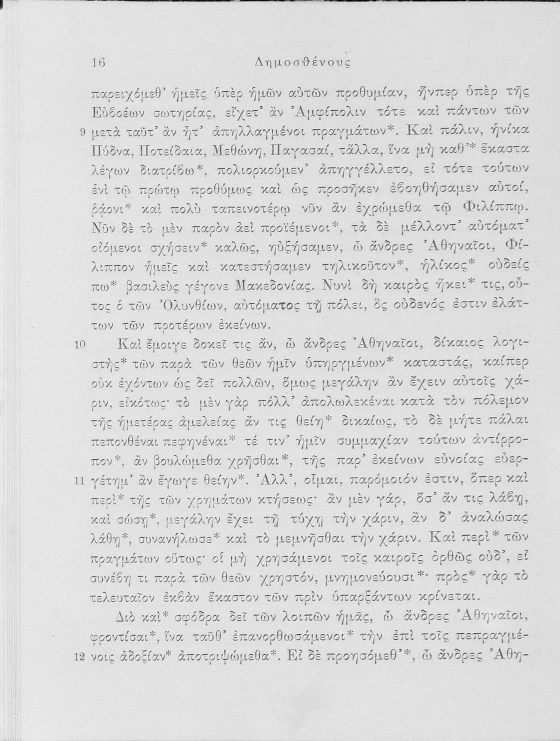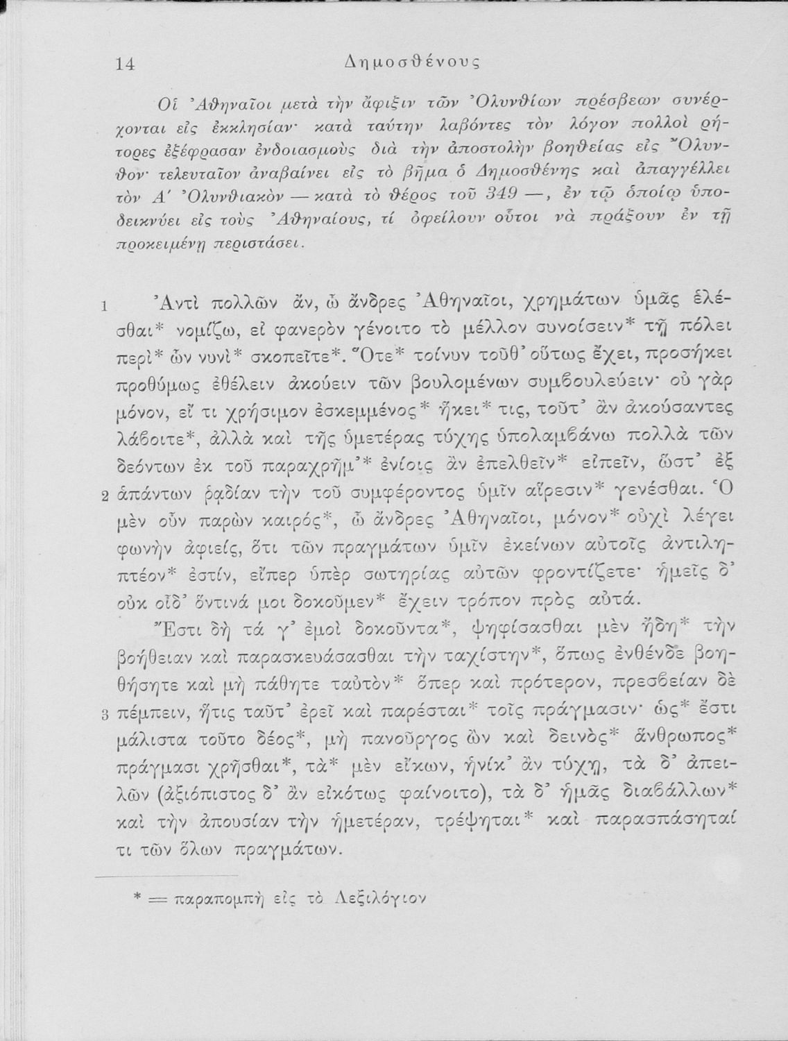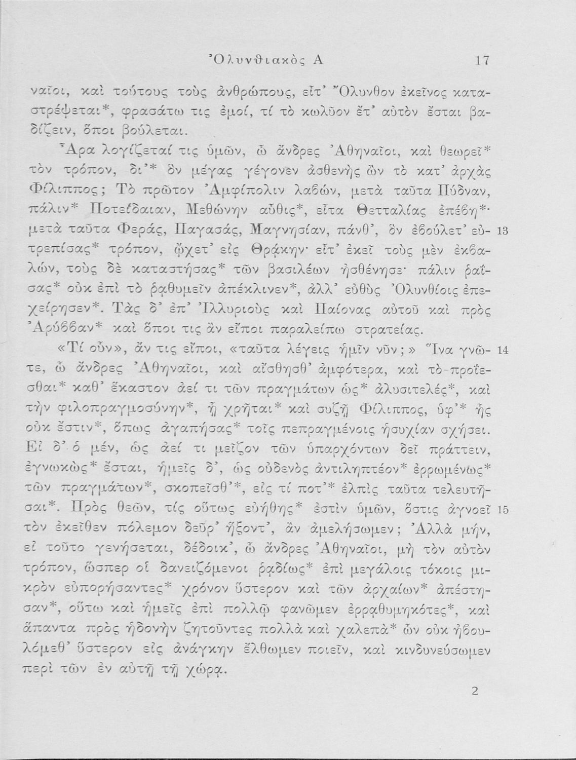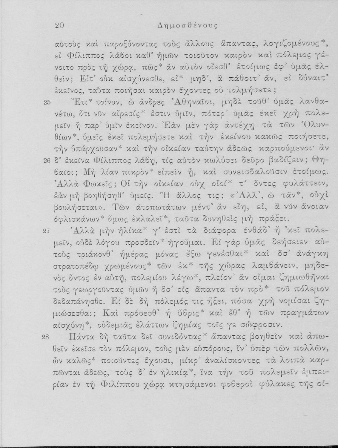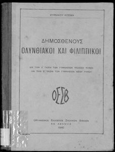 Σχολικό εγχειρίδιο Αρχαίων Ελληνικών Δ΄ και Ε΄ Γυμνασίου που περιέχει τους Ολυνθιακούς Α΄ και Β΄ και τους Φιλιππικούς Α΄ και Β΄ του Δημοσθένη, βιογραφικό σημείωμα, λεξιλόγιο και ερμηνευτικά και ετυμολογικά σχόλια.