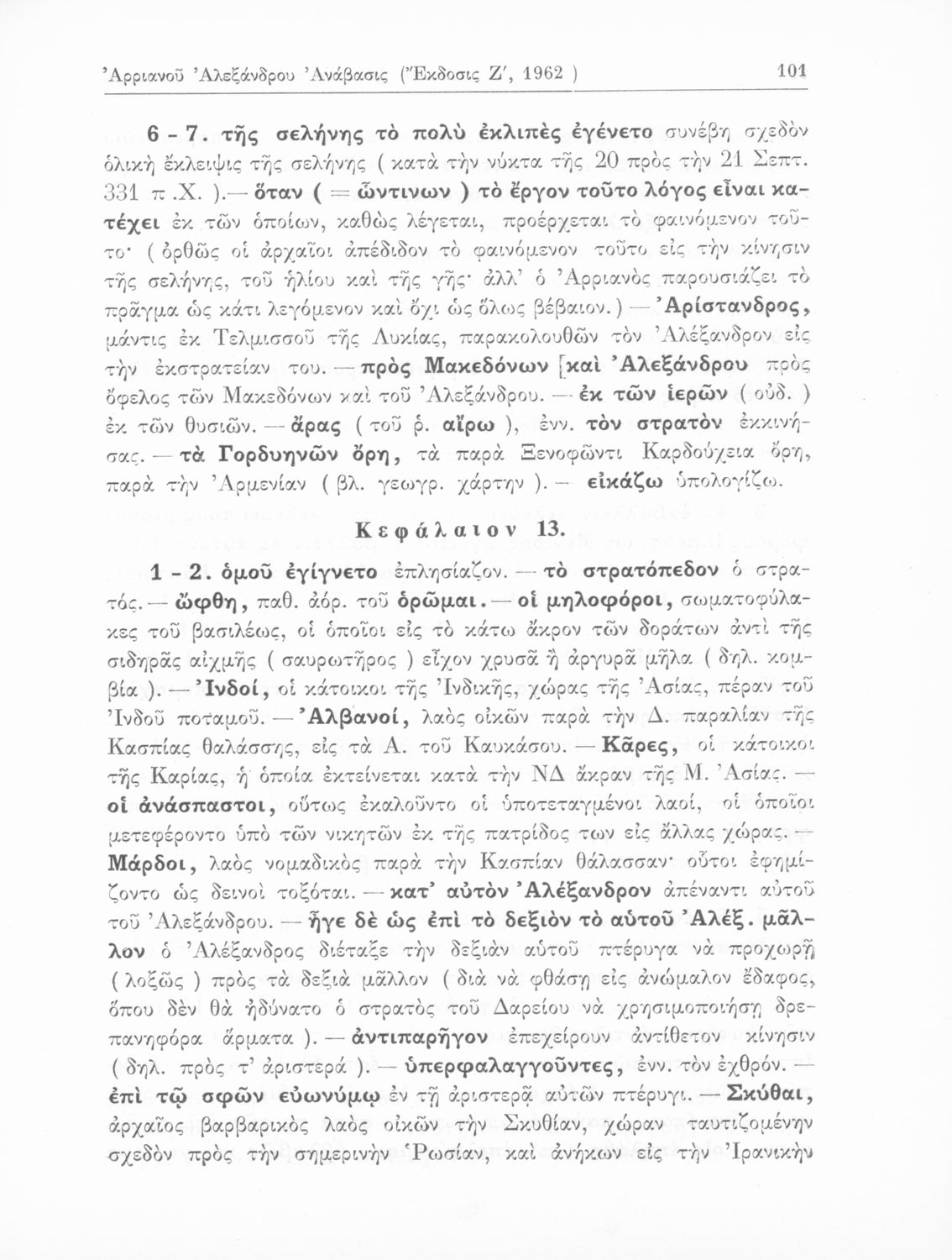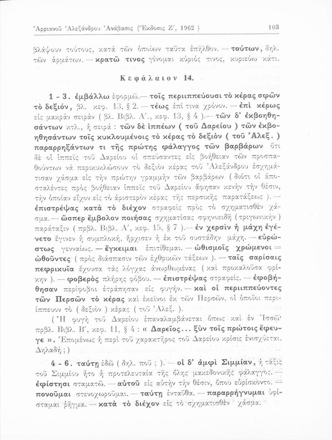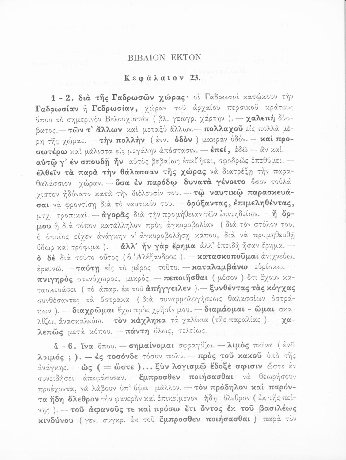 Σχολικό εγχειρίδιο Αρχαίων Ελληνικών που περιλαμβάνει αποσπάσματα από το έργο του Αρριανού Αλέξανδρου Ανάβασις και του Ηρόδοτου Ιστορίαι, ερμηνευτικές και λεξιλογικές παρατηρήσεις καθώς και τοπογραφικούς πίνακες και χάρτες..