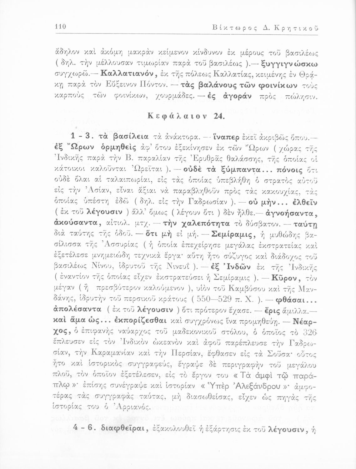 Αρριανός (Lucius Flavius Arrianus), Ηρόδοτος, Βίκτωρος Δ. Κρητικός, Κυριάκος Κοσμάς (σχόλια)