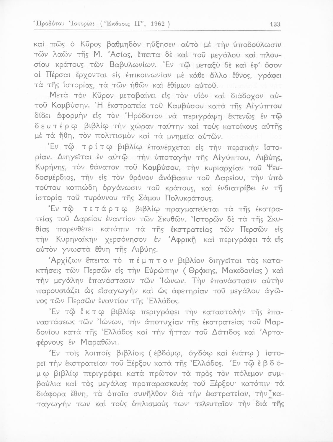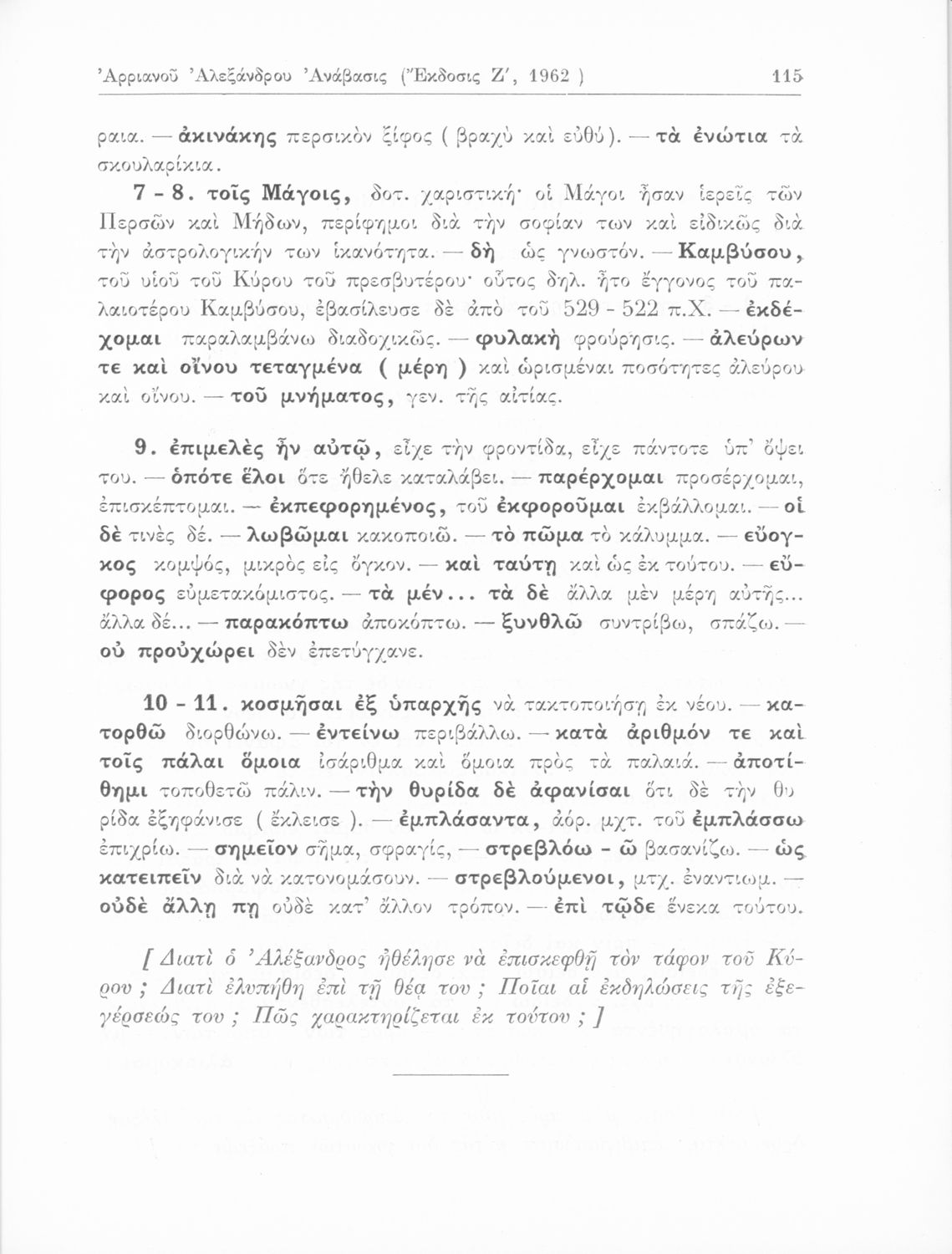 Σχολικό εγχειρίδιο Αρχαίων Ελληνικών που περιλαμβάνει αποσπάσματα από το έργο του Αρριανού Αλέξανδρου Ανάβασις και του Ηρόδοτου Ιστορίαι, ερμηνευτικές και λεξιλογικές παρατηρήσεις καθώς και τοπογραφικούς πίνακες και χάρτες..