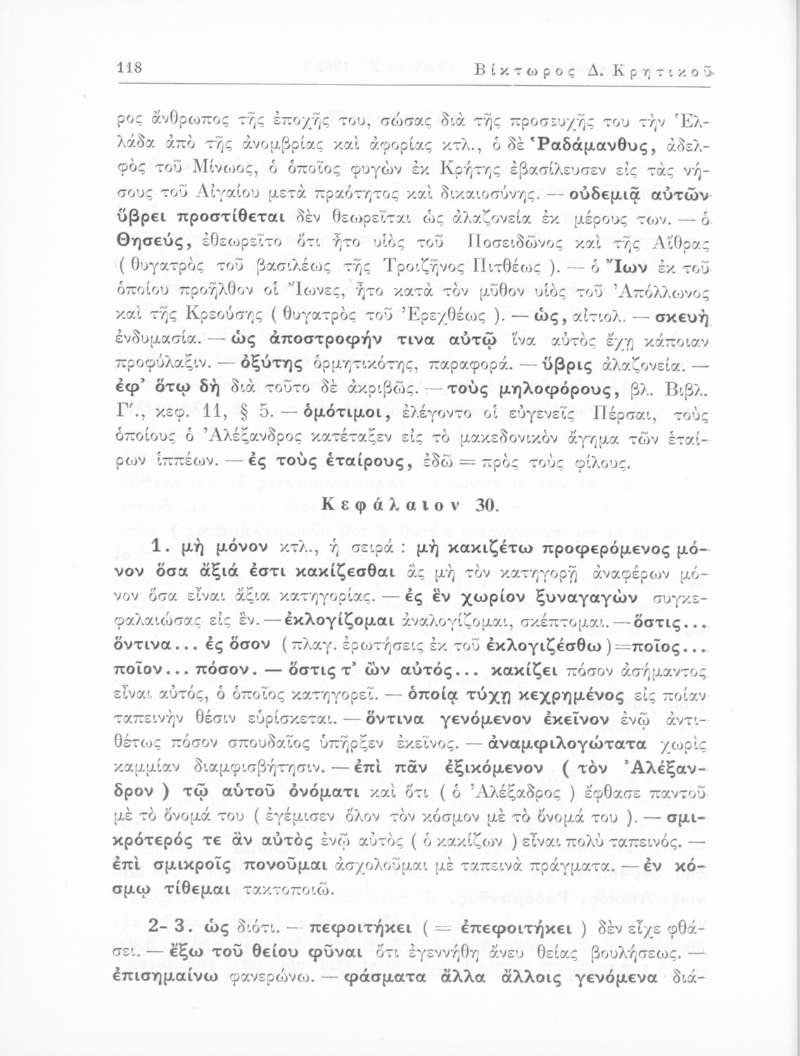 Αρριανός (Lucius Flavius Arrianus), Βίκτωρ Δ. Κρητικός (σχόλια)