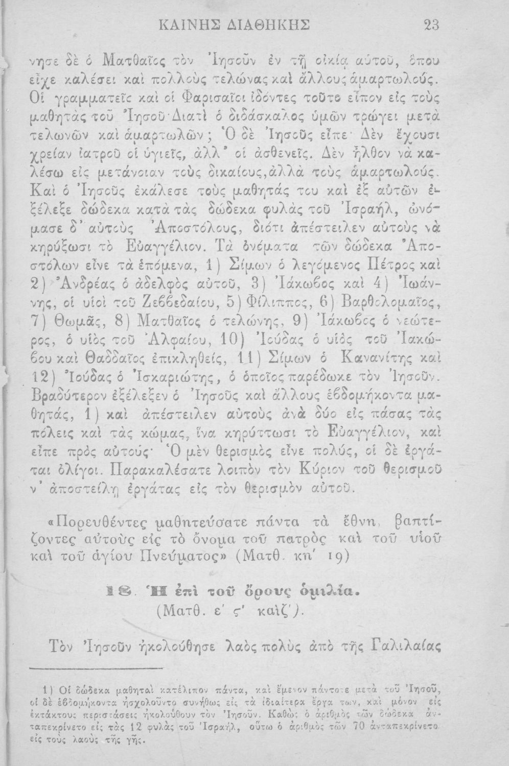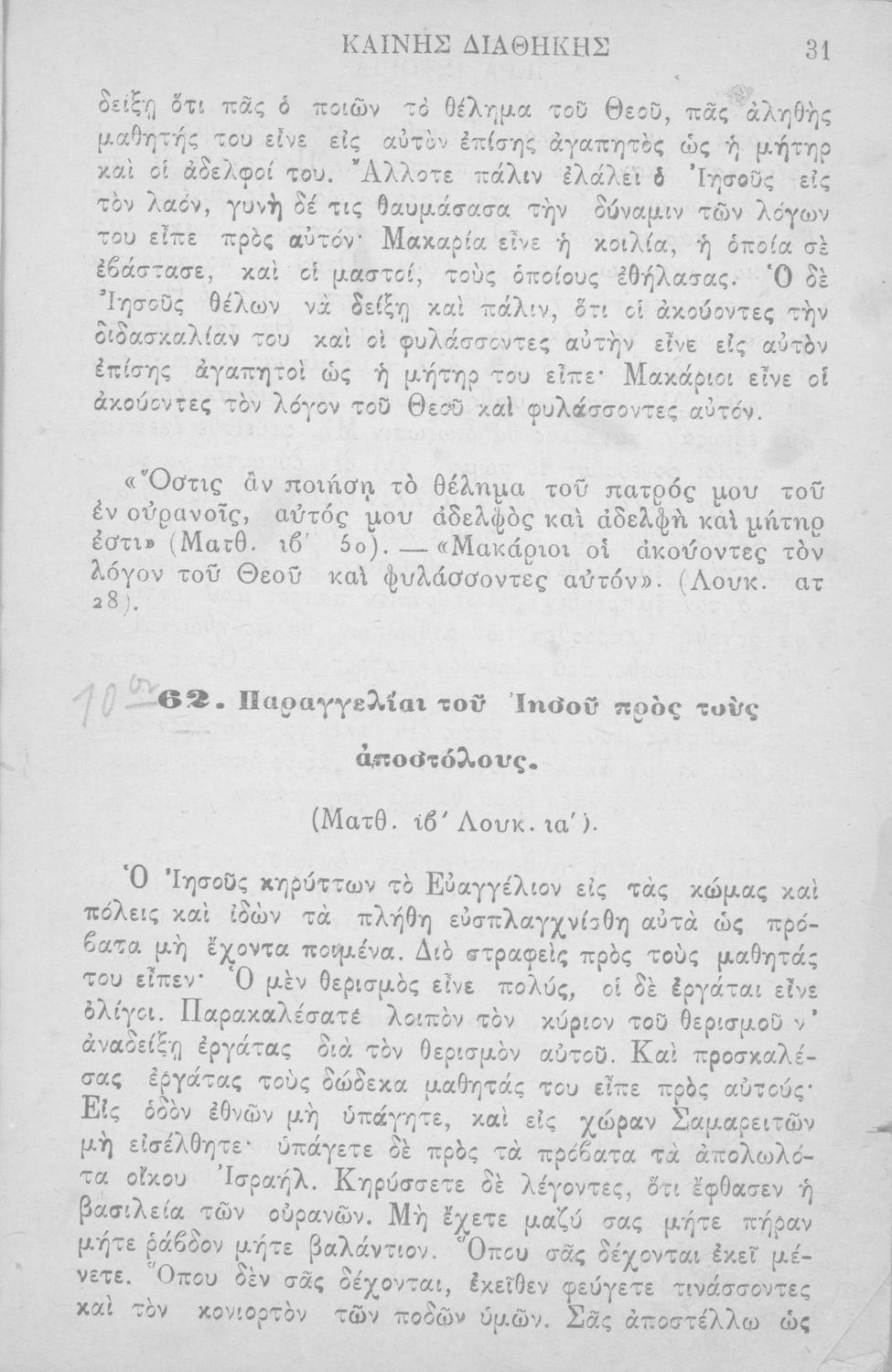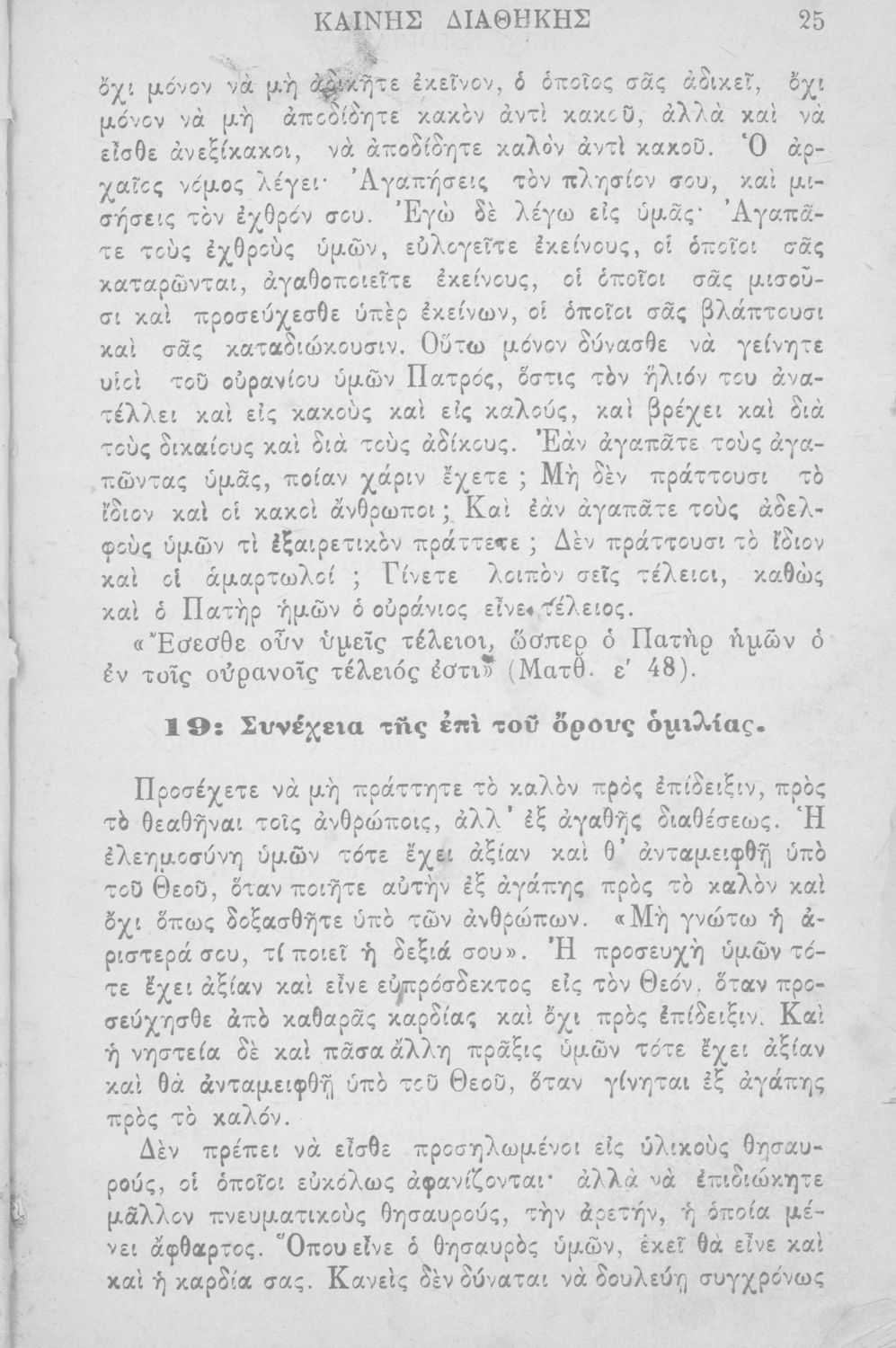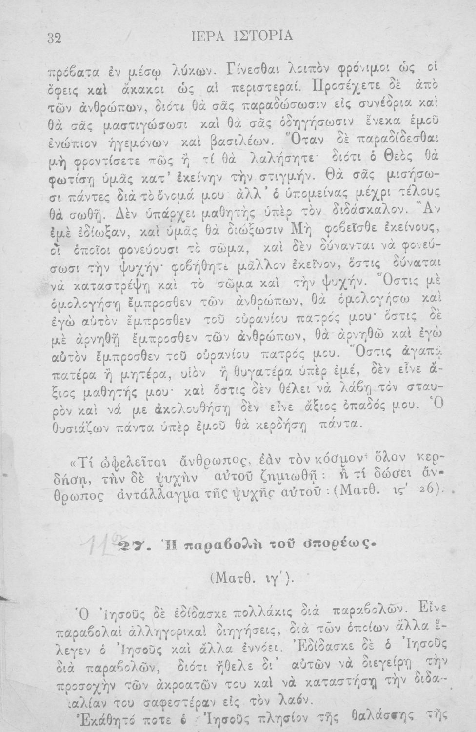 Σχολικό εγχειρίδιο Θρησκευτικών για τα Ελληνικά Σχολεία και τα Παρθεναγωγεία που αποτελεί μια εξιστόρηση της Καινής Διαθήκης από την γέννηση του Ιησού Χριστού ως το έργο των Αποστόλων