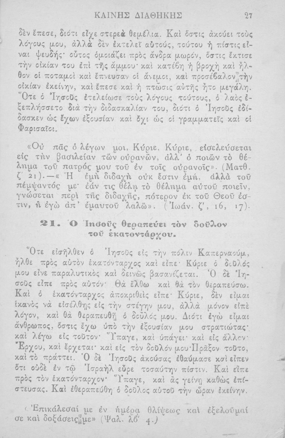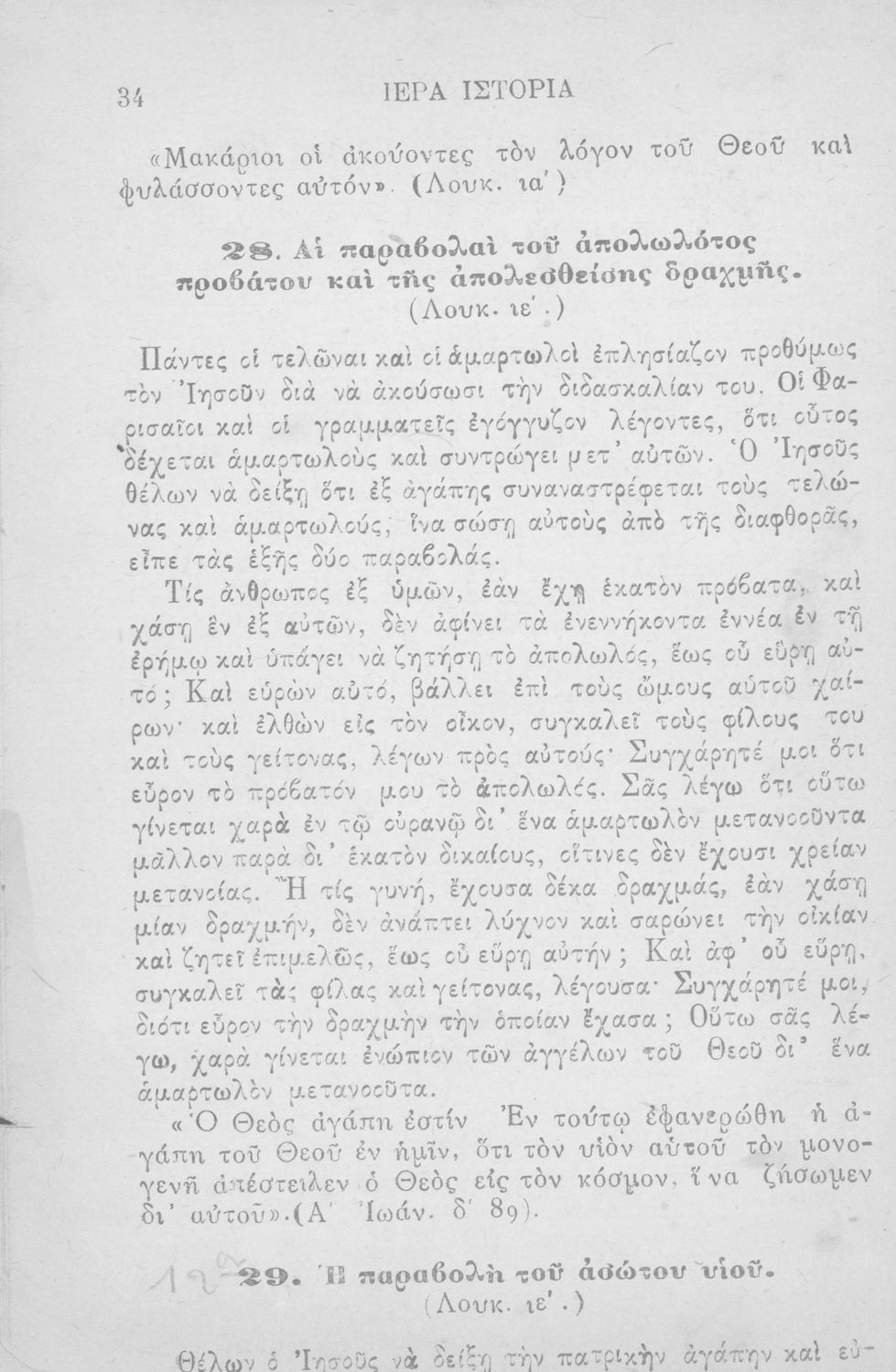 Σχολικό εγχειρίδιο Θρησκευτικών για τα Ελληνικά Σχολεία και Παρθεναγωγεία που συνιστά μία εξιστόρηση της Καινής Διαθήκης από τη γέννηση της Θεοτόκου ως την ανάληψη του Χριστού και τη δράση των Αποστόλων.