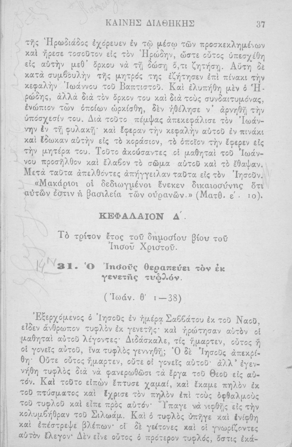 Σχολικό εγχειρίδιο Θρησκευτικών για τα Ελληνικά Σχολεία και τα Παρθεναγωγεία που περιλαμβάνει την ιστορία της Καινής Διαθήκης από τον Ευαγγελισμό της Θεοτόκου μέχρι την ανάληψη του Ιησού Χριστού