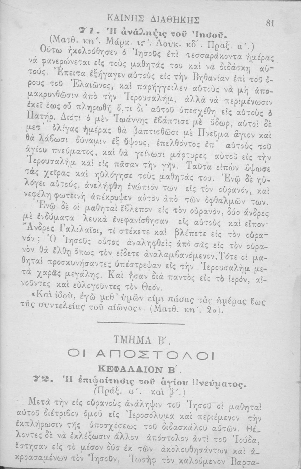 Σχολικά εγχειρίδια Θρησκευτικών για τα Ελληνικά Σχολεία και τα Παρθεναγωγεία που περιλαμβάνει την ιστορία της Καινής Διαθήκης από τον Ευαγγελισμό της Θεοτόκου μέχρι τη δράση των Αποστόλων.